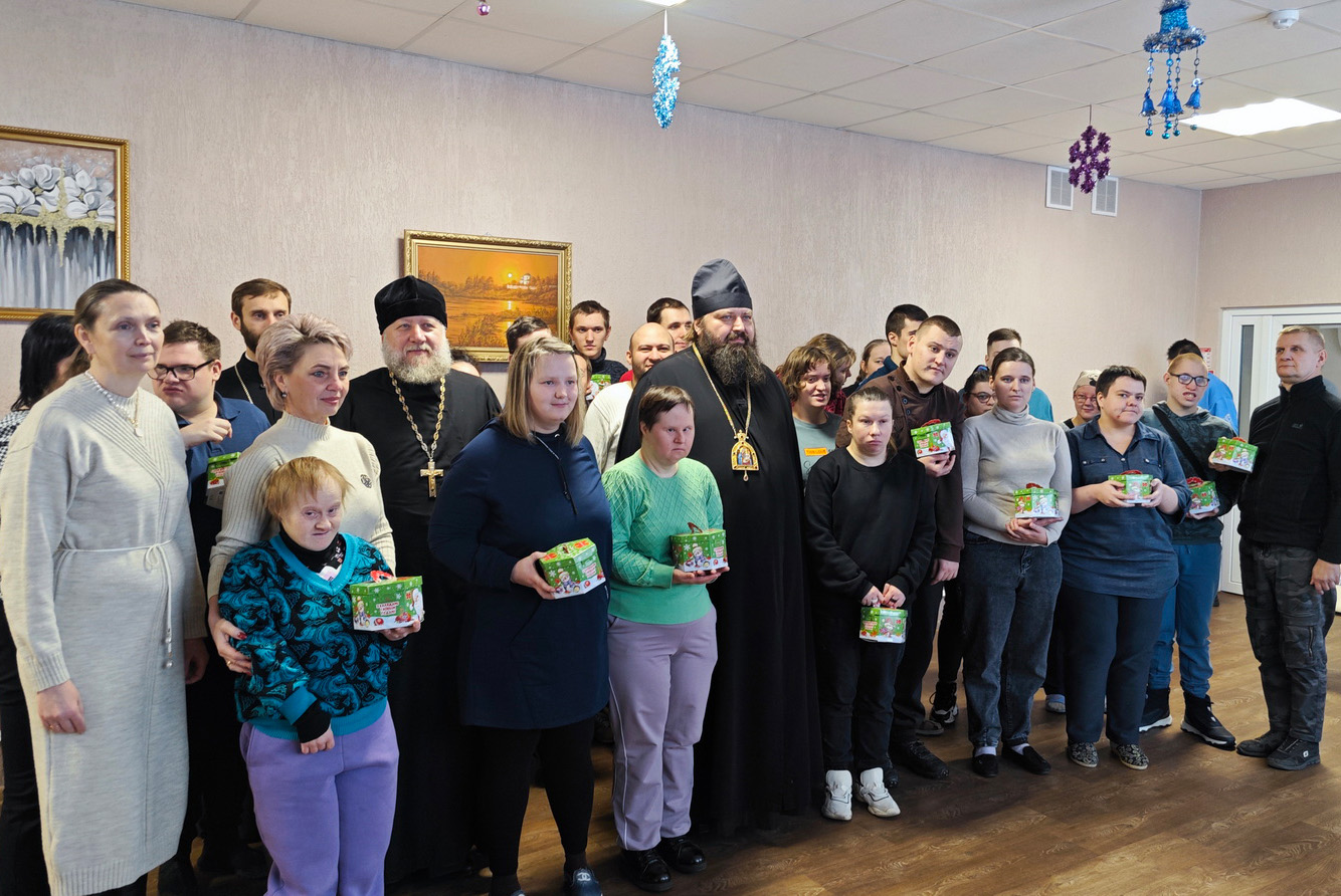 Владыка Амвросий вместе с руководителем отдела по церковной благотворительности и социальному служению Борисовской епархии иереем Александром Лукьяновичем, матушкой Галиной Лукьянович (помощник руководителя) и священником Димитрием Качановским поздравили подопечных центра с наступающими новогодними и рождественскими праздниками.
