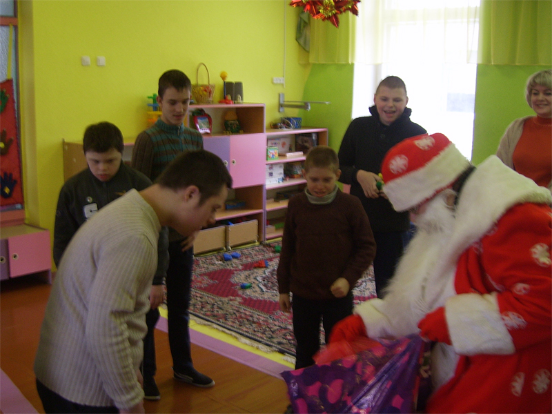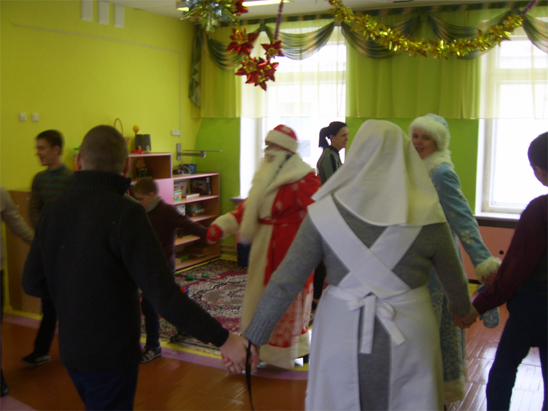 Вместе с Дедом Морозом и Снегурочкой, в сопровождении заместителя директора по учебной работе центра Стародворской Мариной Николаевной прошли по группам: общались с ребятами, пели песни, водили хоровод. Всем воспитанникам были вручены подарки.