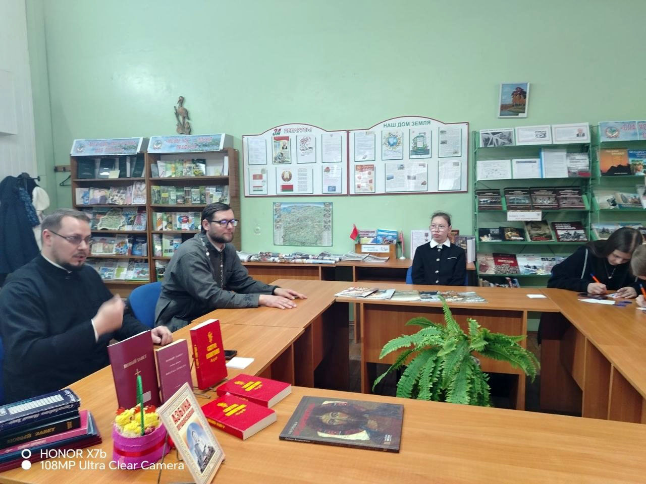 17 апреля клирики кафедрального собора Воскресения Христова г. Борисова иерей Артемий Прокофьев и диакон Владимир Букштунович провели встречу со студентами отделения профессий лесного, сельского хозяйства и садово-паркового строительства Борисовского государственного колледжа на тему «Пасха. История и традиции».