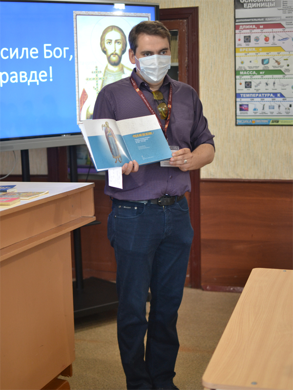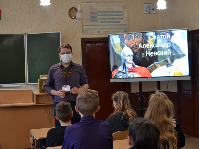 О жизни, подвигах, духовной деятельности святого благоверного князя Александра Невского рассказал сотрудник духовно-просветительского центра Борисовской центральной районной библиотеки им. И.Х. Колодеева Дмитрий Александрович Тимошенко.