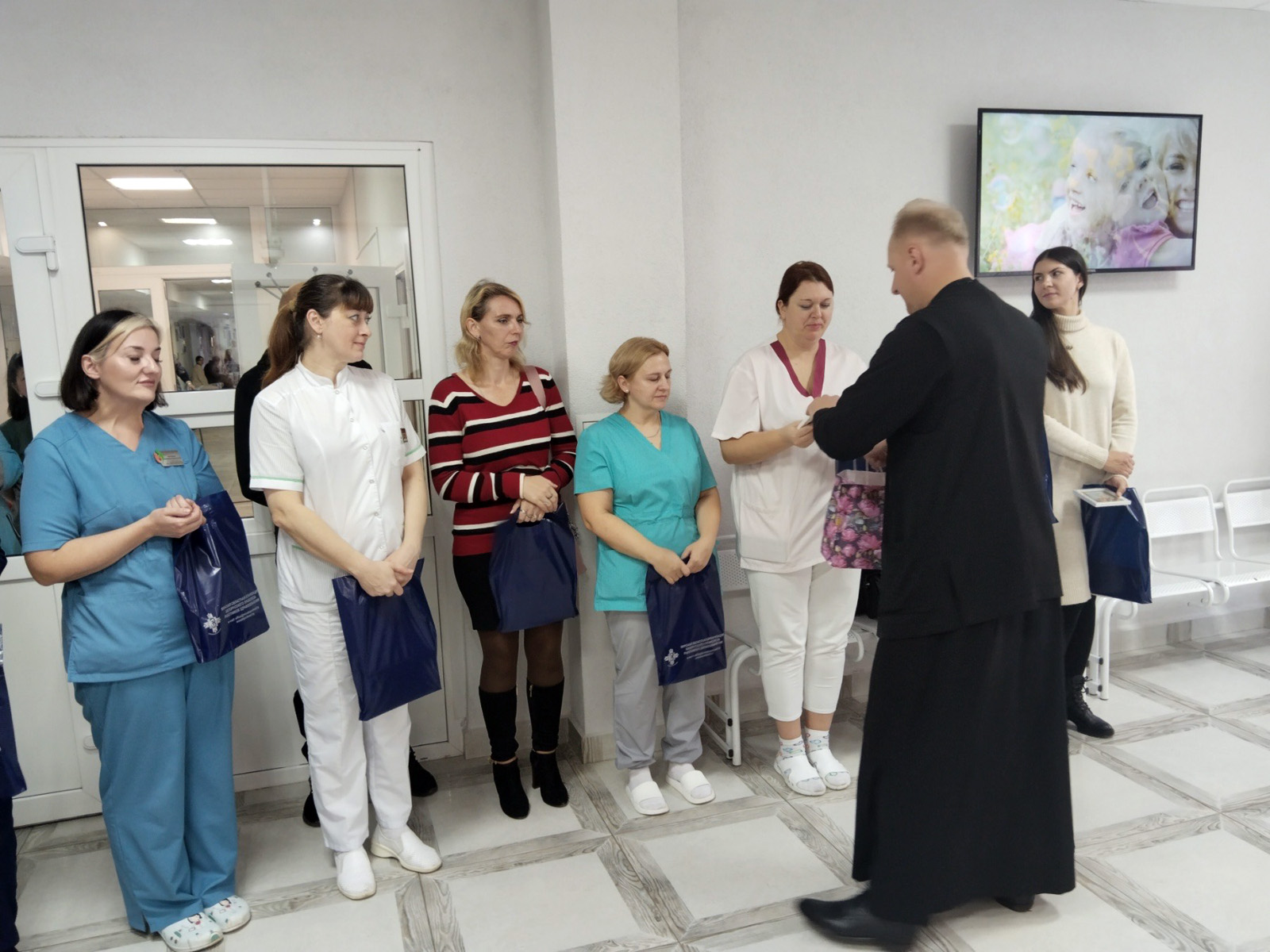По благословению Преосвященнейшего Амвросия, епископа Борисовского и Марьиногорского, секретарь Борисовской епархии протоиерей Сергий Башкиров принял участие в чествовании женщин, родивших детей в праздник Покрова Пресвятой Богородицы, а также многодетных сотрудниц родильного дома.