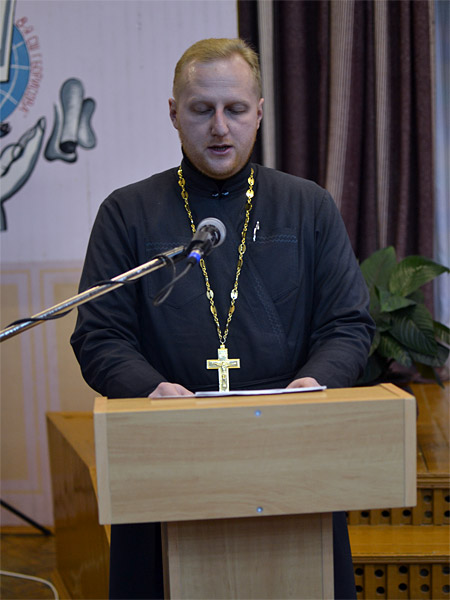 С приветственным словом к родителям и всем собравшимся в зале выступил благочинный Борисовского церковного округа, настоятель прихода храма Рождества Христова протоиерей Александр Вербило. Он отметил важную роль отцов в воспитании детей, отношение к этому вопросу Православной Церкви.