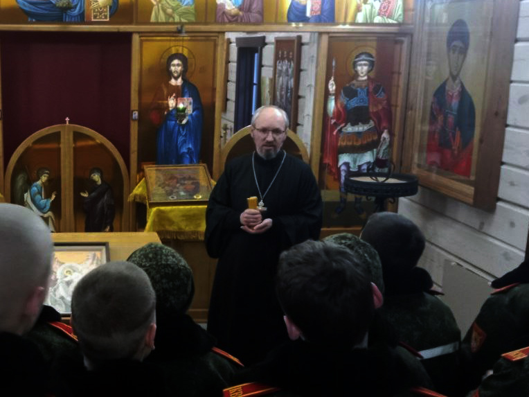 Настоятель храма иерей Сергий Хацкевич рассказал историю возникновения христианских храмов, их устройство и значение, о необходимости веры в Бога и молитвы в жизни каждого человека, о смысле христианской жизни, в завершение ответил на вопросы гостей. Также кадеты поставили свечи и получили в подарок небольшие иконы. Силами прихожан, было организовано чаепитие.