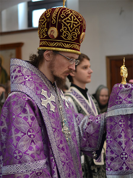 По окончании богослужения Владыка Вениамин обратился к молящимся с проповедью, в которой говорил о том, что Крест есть мерило подвига христианина. Взирая на Крест Господень мы должны вспоминать и размышлять, что сделал для нас Спаситель мира. Но мы должны задуматься также и о том, что мы сами делаем для своего спасения, как отвечаем на великую жертву и любовь Сына Божия.