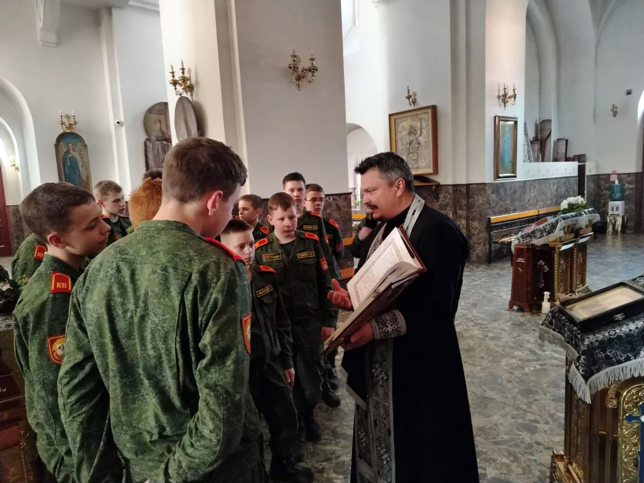 18 марта клирик кафедрального собора Воскресения Христова г. Борисова иерей Сергий Сасыкбаев провел духовно-просветительскую беседу с учащимися первого курса Борисовского кадетского училища.