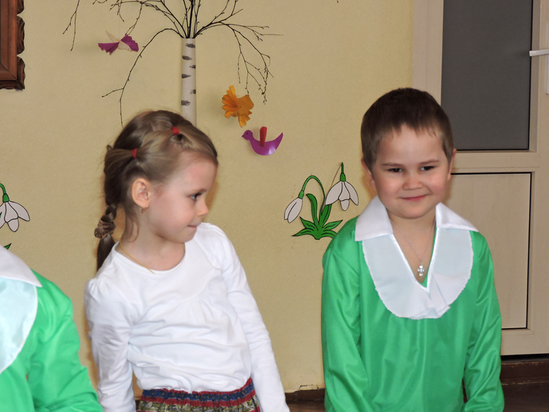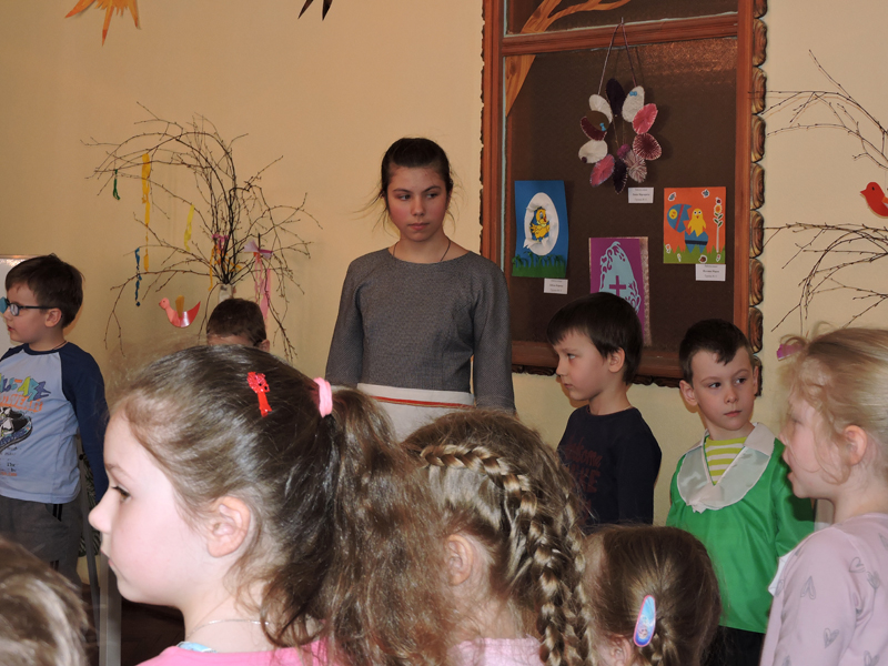Христос Воскрес! Воистину Воскрес! Слушаешь и не можешь наслушаться, потому что ни на земле, ни на самом небе нет более светлых и радостных слов! В этот Праздников Праздник всякая верующая душа чувствует удивительную, ни с чем не сравнимую радость при мысли о Воскресении Христовом! Мы все братья и сестры, мы все одна семья. И мы устраиваем пасхальный обед, красим яйца, печем куличи, в чем проявляется наша земная радость о празднике. И, конечно, мы ходим друг к другу в гости. И сегодня, 18 апреля учащиеся нашей церковно-приходской школы — Иван Лешко и Алиса Каюкова вновь посетили д/с № 35. Воспитанники детского сада подготовили праздничную программу: игры, стихи, песни и танцы. В свою очередь, наши ребята показали детям сказку " Пасхальное яйцо". Важно, что на таких праздниках каждый включен в общую радость, все активны и веселы!