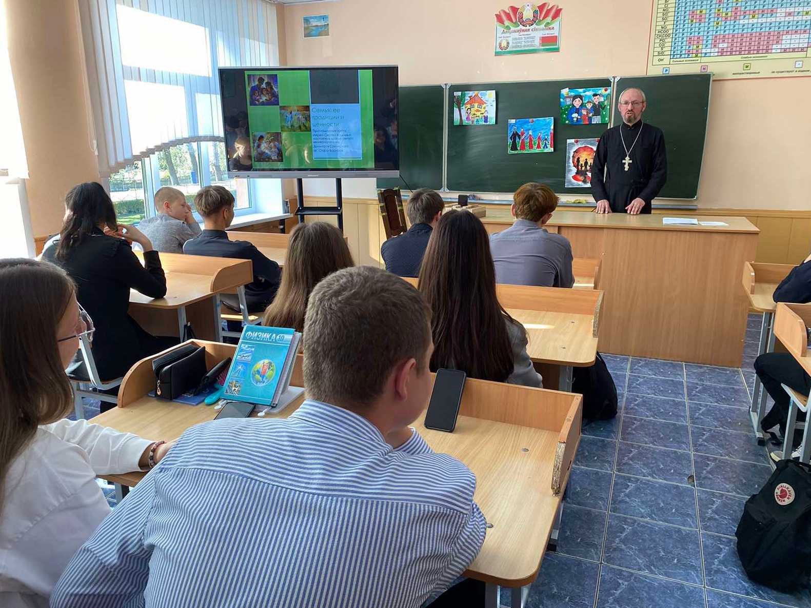 Настоятель храма святого великомученика Димитрия Солунского в аг. Старо-Борисов иерей Сергий Хацкевич посетил местную школу, где провёл беседу с учащимися 10-11-х классов на тему «Семья: еë традиции и ценности».