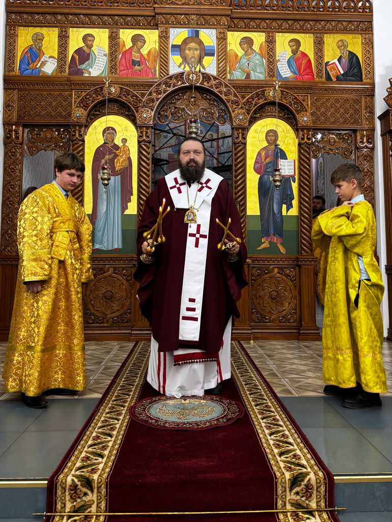 За богослужением Его Преосвященству сослужили: протоиерей Павел Яцукович, ключарь кафедрального собора Воскресения Христова г. Борисова; протоиерей Илья Гончарук, благочинный Березинского церковного округа; иерей Григорий Целков, благочинный Пуховичского церковного округа, клирики кафедрального собора. Диаконский чин совершил диакон Владимир Букштунович. Все песнопения за богослужением исполнил сводный детский хор под управлением регента Ксении Качановской.