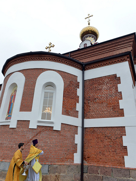 За усердные труды по возрождению храма Патриарший Экзарх на малом входе возвел в сан протоиерея и наградил правом ношения наперсного креста настоятеля храма иерея Андрея Капульцевича. Также митрополит Павел вручил церковные награды потрудившимся во славу Святой Православной Церкви. Наград были удостоены: Председатель правления футбольного клуба БАТЭ А.А. Капский, директор СП «ФреБор» ООО В.И. Бургун, генеральный директор СЗАО «БелДжи» Д.Н. Батраков, директор ОАО «Белкард» А.А. Марченко и другие жители Борисовского региона, внесшие вклад в восстановление православной святыни.