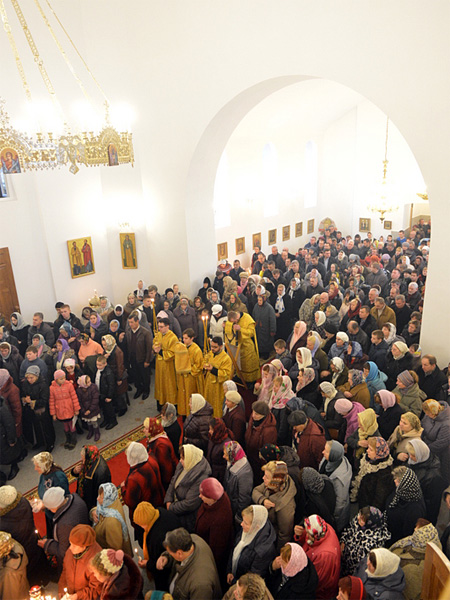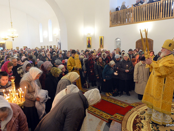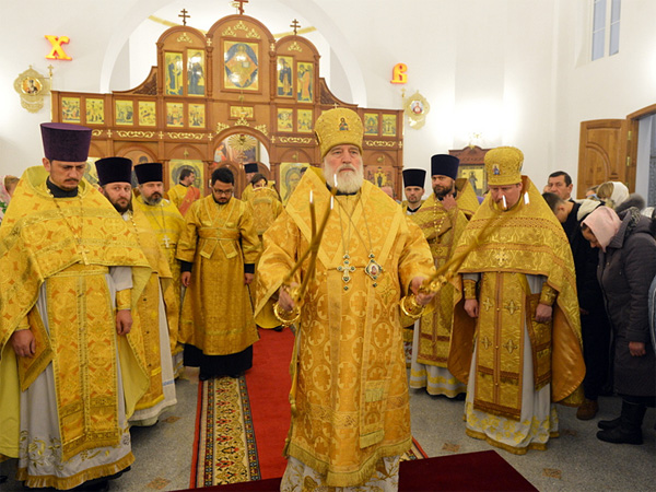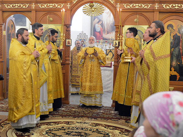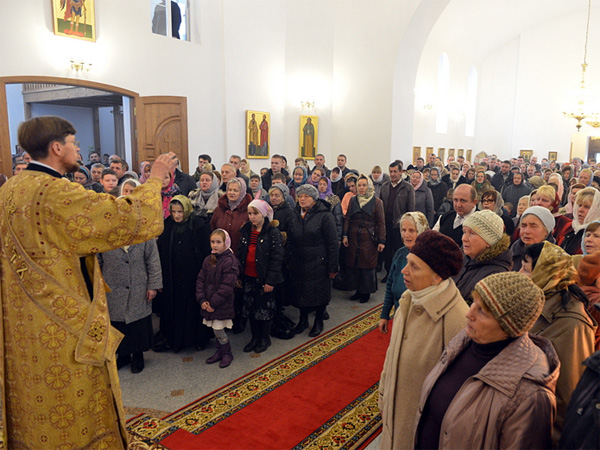 Митрополит Павел поздравил духовенство и прихожан с освящением храма и обратился к собравшимся с проповедью.