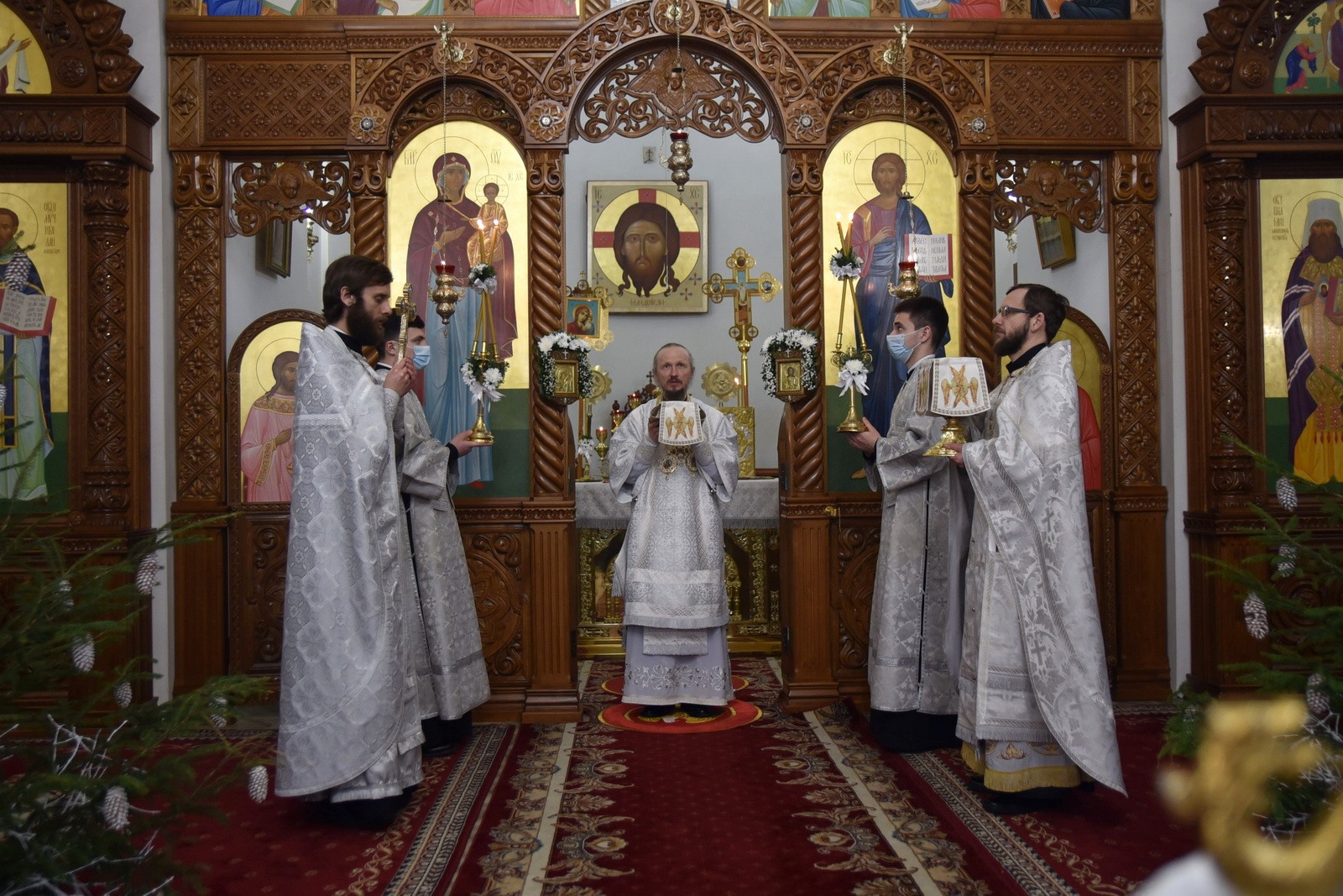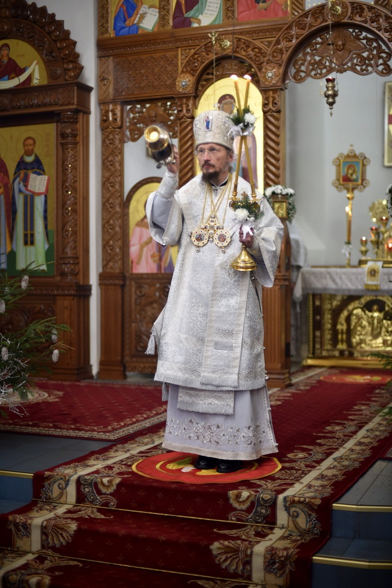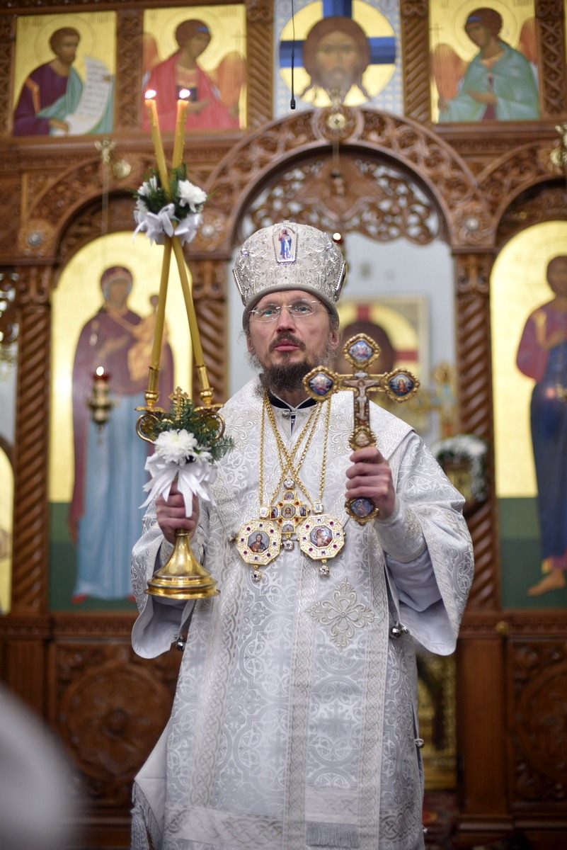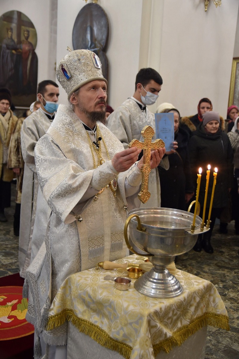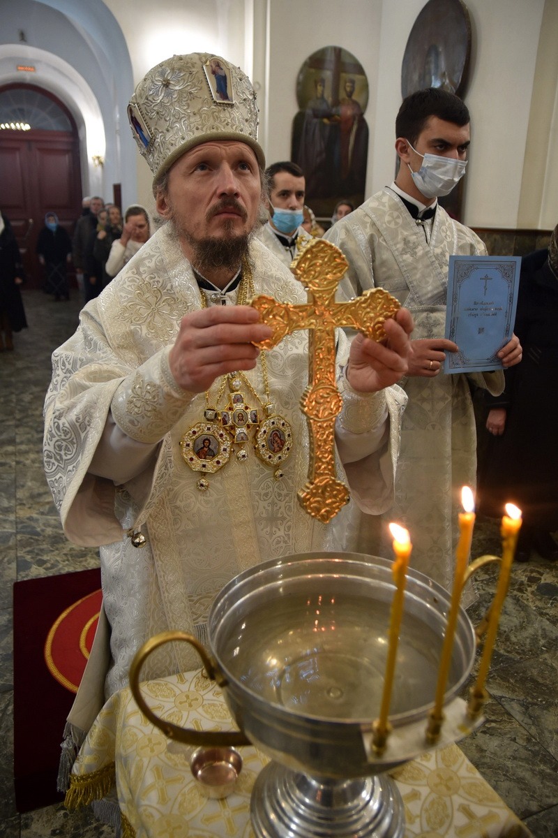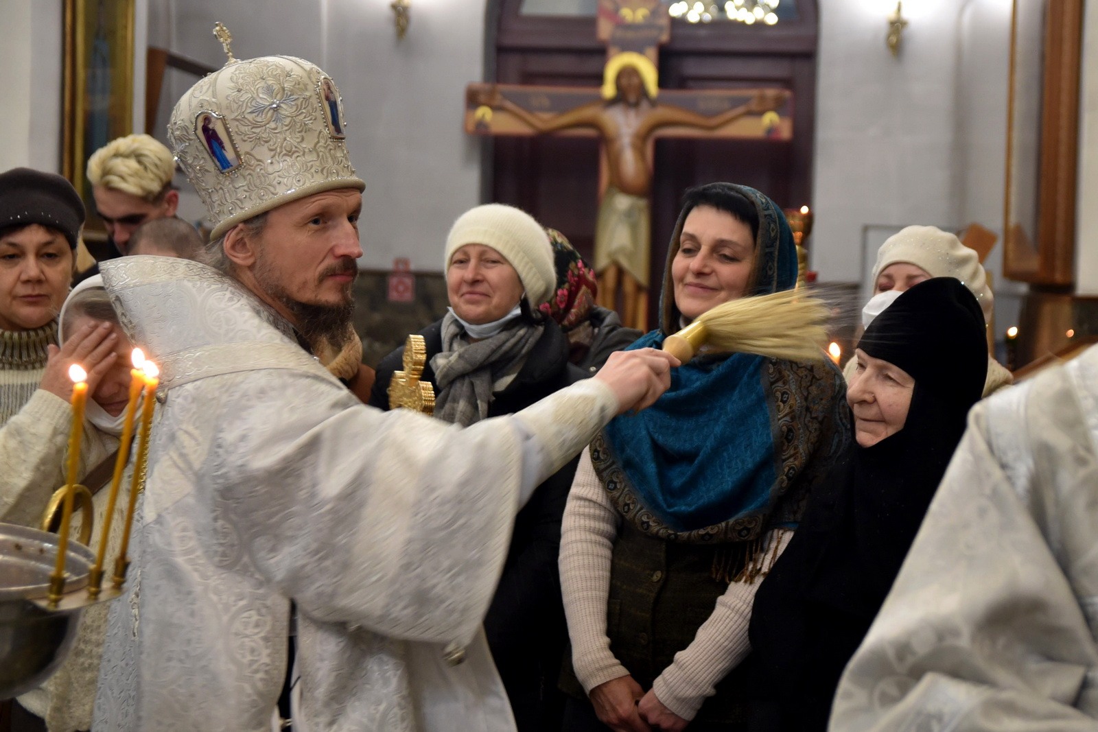 По окончании богослужения владыка Вениамин поздравил прихожан и духовенство собора с праздником Святого Богоявления, окропил собор и молящихся святой водой, после чего обратился к молящимся со словом назидания.