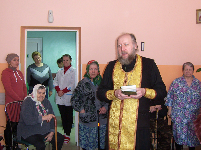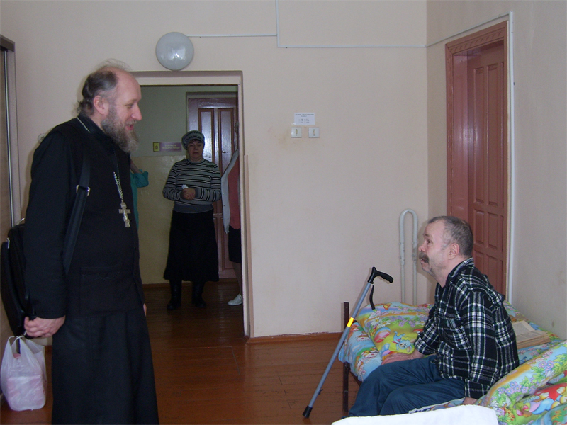 Отдел по церковному социальному служению Борисовских благочиний более шести лет ежемесячно посещает инвалидов и пожилых людей, проживающих в больницах сестринского ухода и в государственных социальных учреждениях, расположенных в Борисовском районе. Государство полностью взяло заботу об этих людях на себя, поскольку они по разным причинам оказались без внимания родных и близких. Нередко приходиться слышать, как плохо живется им на казенных койках. Но это не так. Во всех учреждениях, которые мы посещаем, условия проживания приближены к домашним. Чистые уютные теплые помещения, 3-х разовое питание, надлежащая санитарно-гигиеническая помощь. Вряд ли одинокий престарелый человек сможет самостоятельно обеспечить себя рациональным полноценным питанием, поддерживать порядок в доме, соблюдать личную гигиену. Казалось бы, живи да радуйся.