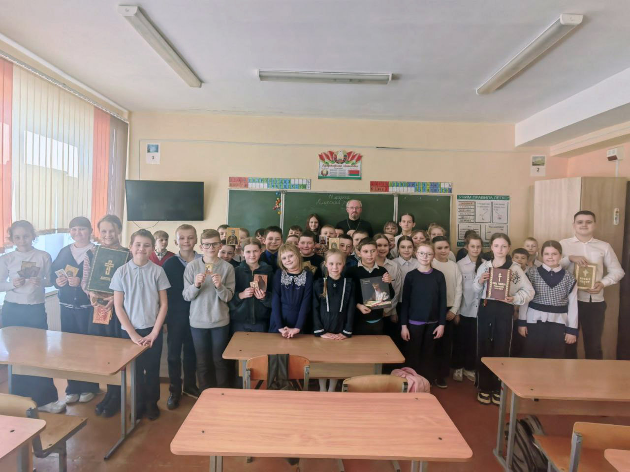 18 марта клирик кафедрального собора Воскресения Христова г. Борисова иерей Сергий Хацкевич посетил Староборисовскую среднюю школу. Священник в ходе беседы с учениками 3-го и 4-го классов рассказал ребятам о Библии и книгопечатании на Белорусской земле, а также представил выставку духовных книг.