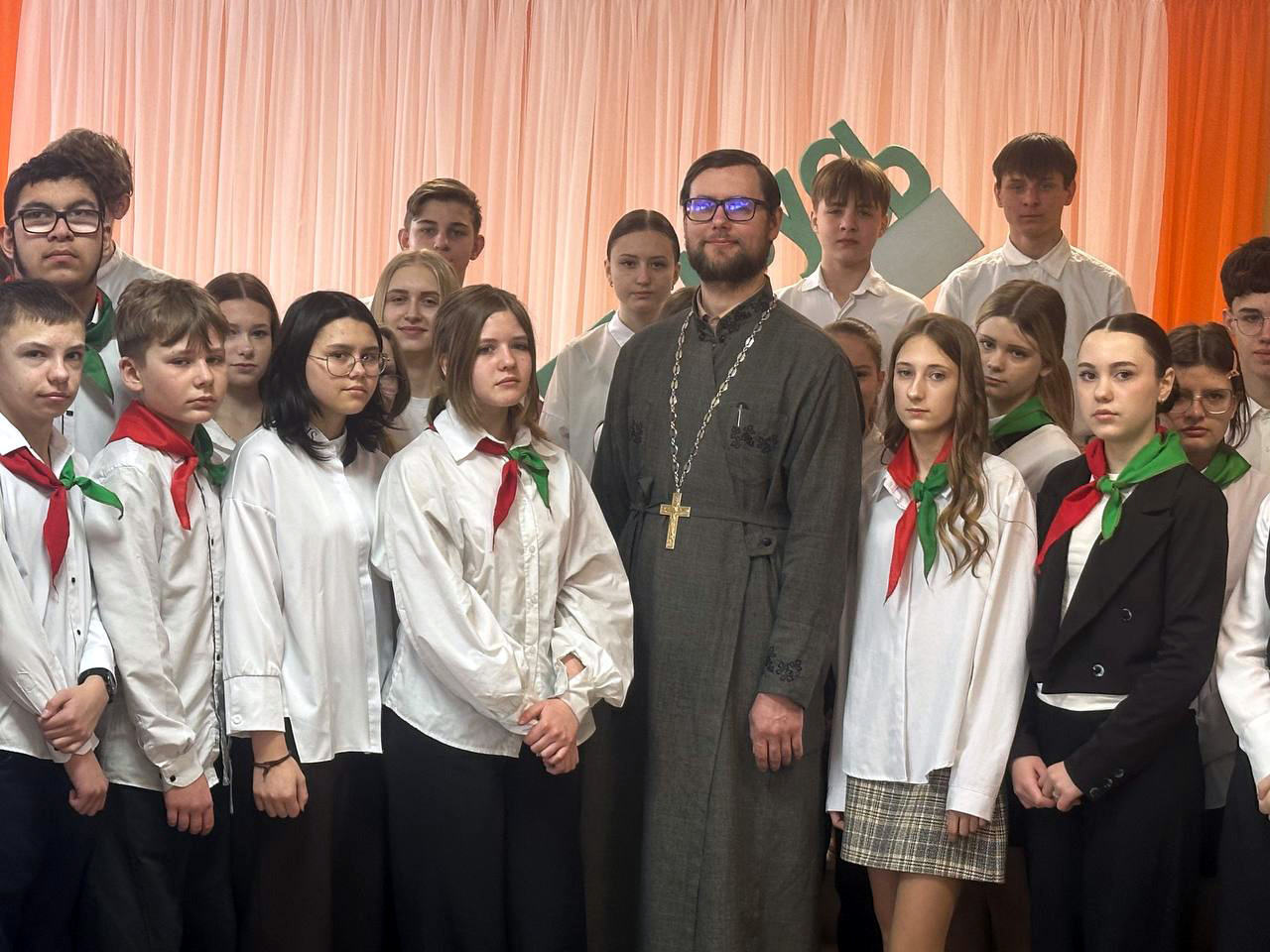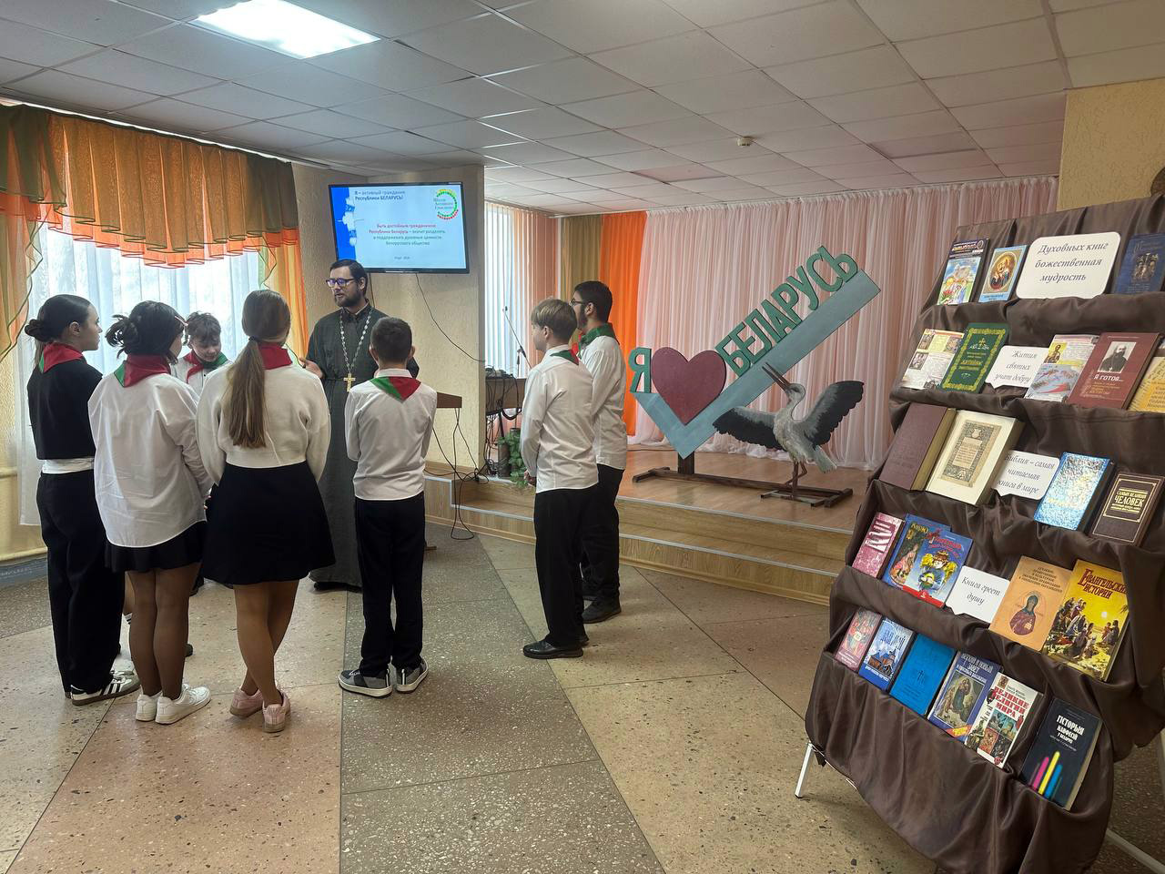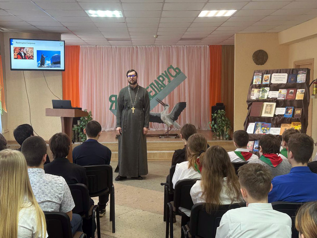 Воскресения Христова г. Борисова иерей Артемий Прокофьев. Священник провел с учащимися тематическую беседу, посвященную духовным ценностям белорусского народа, а также важности духовной литературы в жизни современного человека.