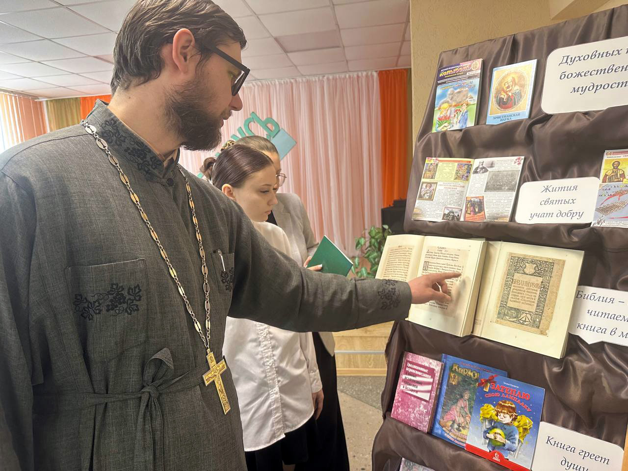 В ходе встречи вниманию ребят была представлена выставка православной литературы. Здесь были как современные издания, так и особо ценные старинные книги. Школьники с интересом рассматривали книги и смогли задать отцу Артемию вопросы о вере, культуре и значении чтения в век цифровых технологий.