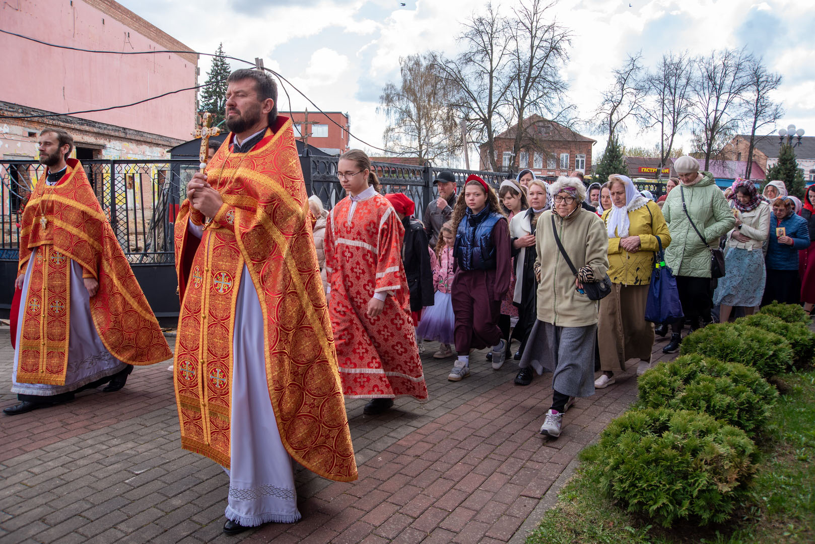 По окончании богослужения был совершён пасхальный крестный ход, после чего Преосвященнейший владыка обратился к молящимся с архипастырским словом назидания.
