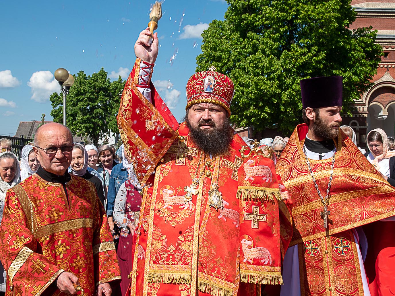 По окончании богослужения владыка Амвросий возглавил крестный ход, после чего было совершено славление блаженной Матроне Московской.