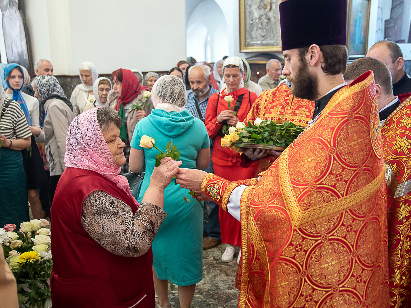 Далее архипастырь обратился к присутствующим со словом назидания, после чего поздравил всех женщин с праздником святых жен-мироносиц и каждой в благословение преподнес по розочке.