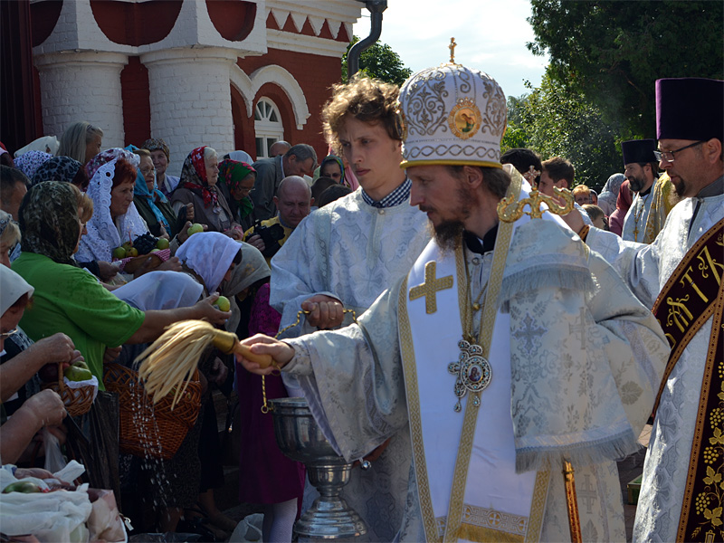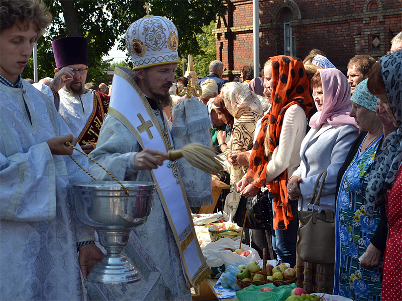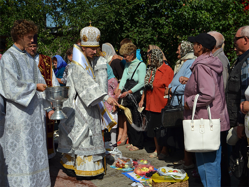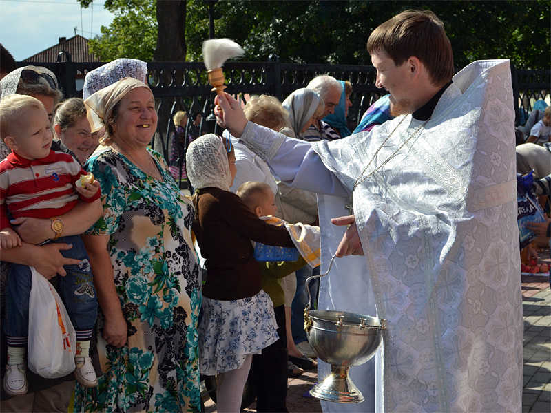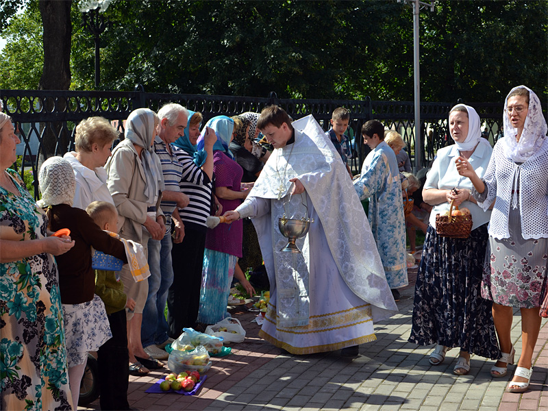 После Литургии во всех приходах состоялось традиционное освящение яблок, груш, слив нового урожая.