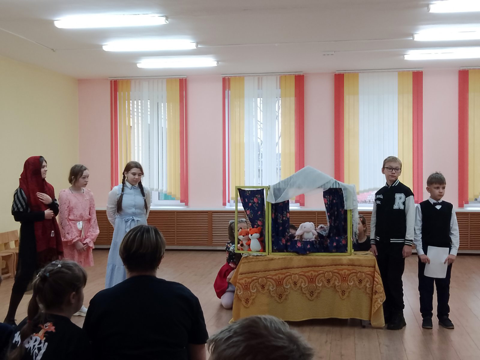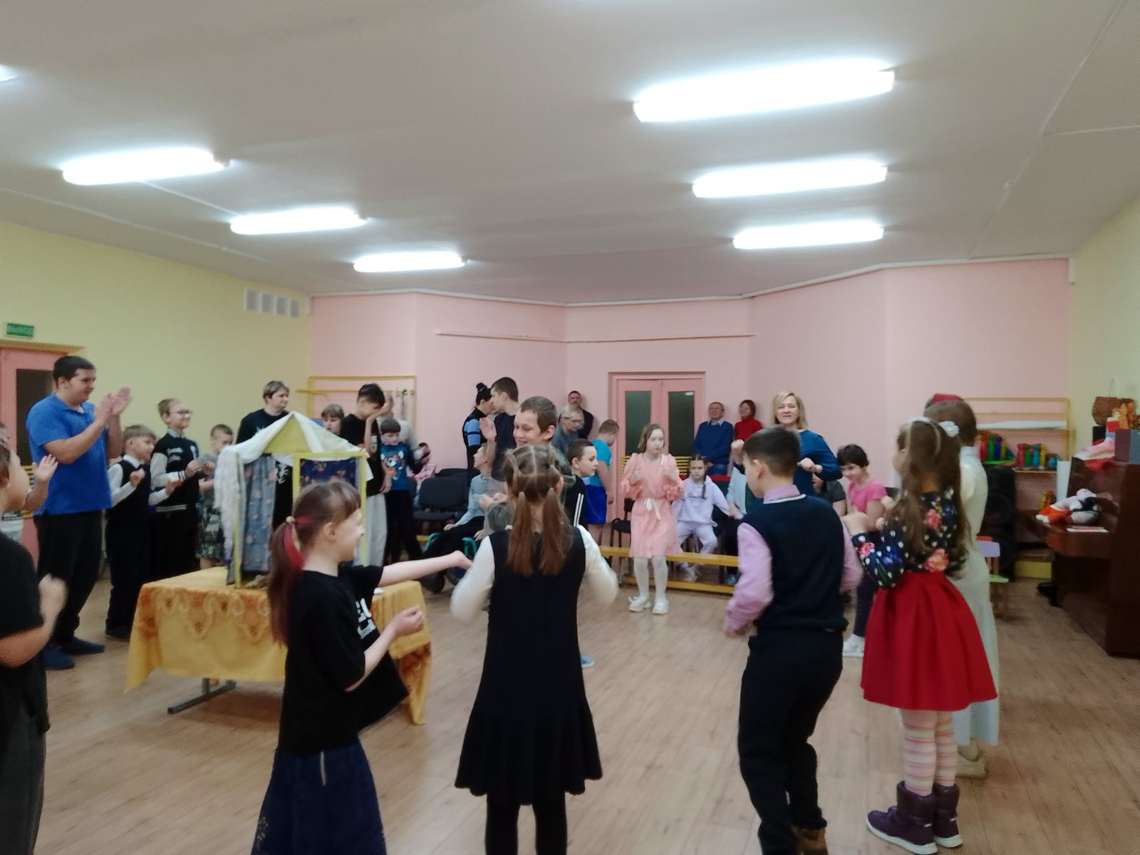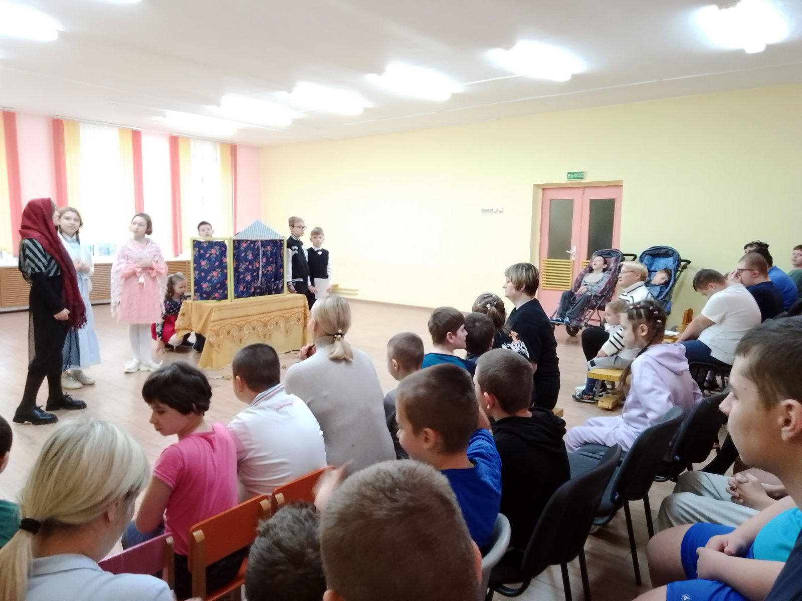 19 ноября учащиеся воскресной школы "Истоки" прихода храма Рождества Христова вместе с протоиереем Евгением Швабом, матушкой Еленой Вербило, педагогом школы Светланой Васильевной Ярцевой подготовили и показали для воспитанников «Борисовский центр коррекционно - развивающего обучения и реабилитации» кукольный спектакль «Шарф - покров», в котором активно участвовали и воспитанники центра.