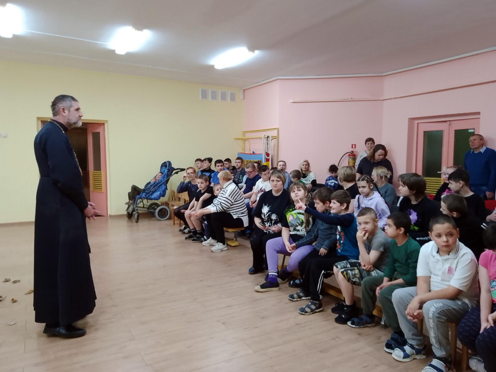 Далее с ребятами была проведена танцевальная игротека. Отец Евгений пожелал всем присутствующим здравия, благополучия и дальнейшего сотрудничества.
