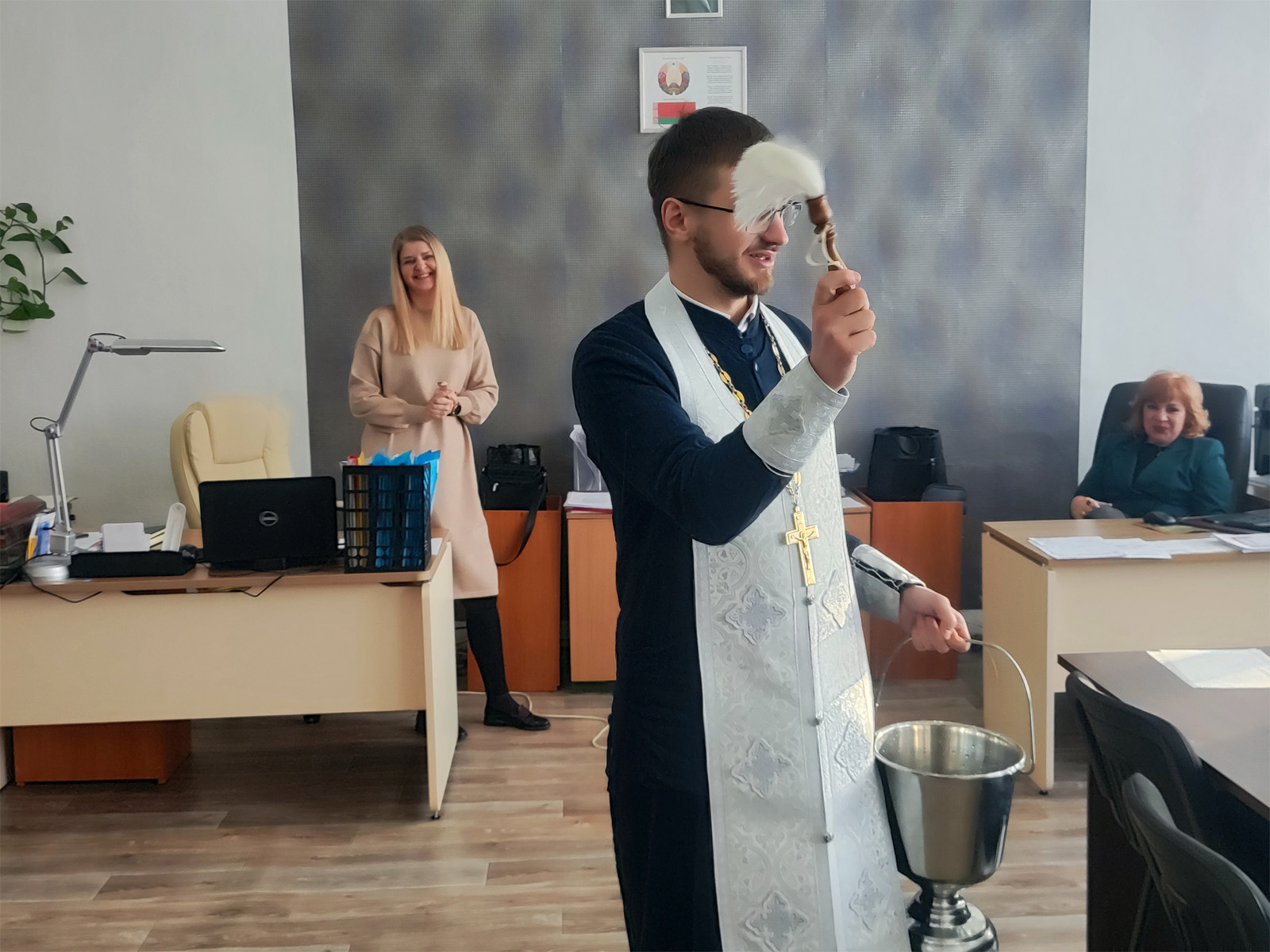 20 января, в дни празднования Крещения Господня, отец Вадим Свириденко, священник храма святого равноапостольного князя Владимира, принес радость и благословение всему коллективу ГУДО «Борисовский центр экологии и туризма». С молитвой и добрыми пожеланиями он прошел по всему центру, окропив всех и вся святой крещенской водой.