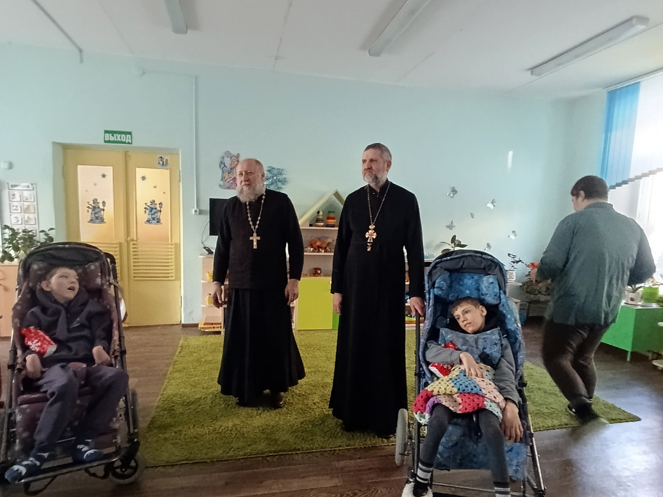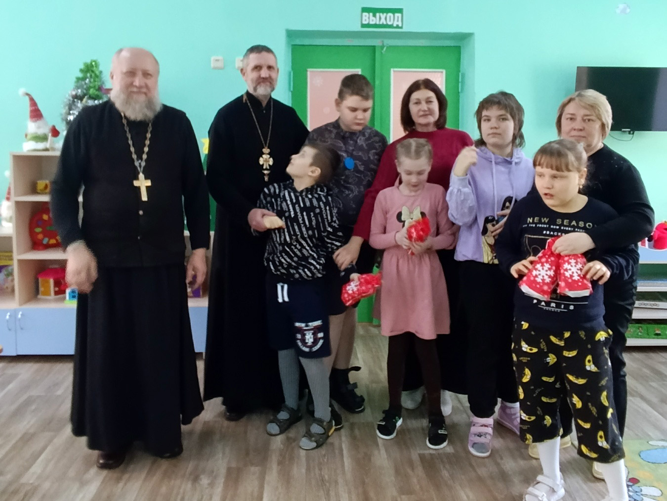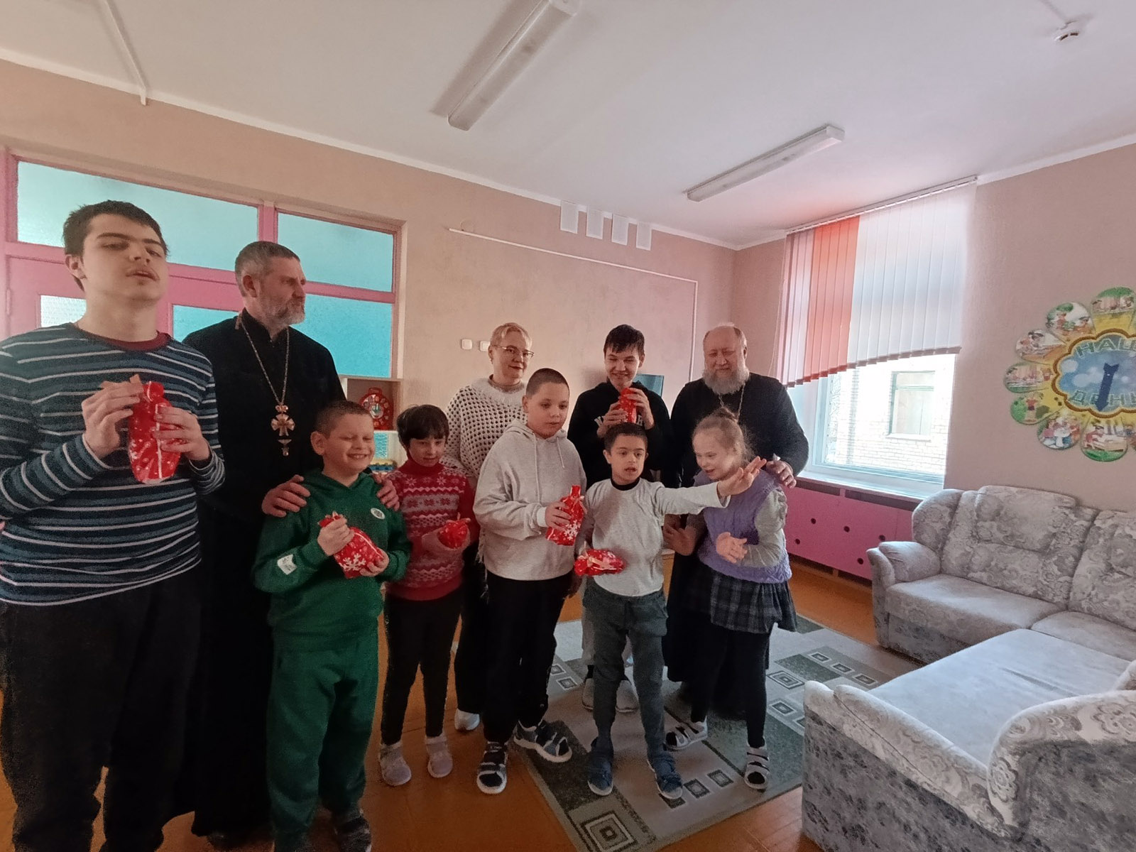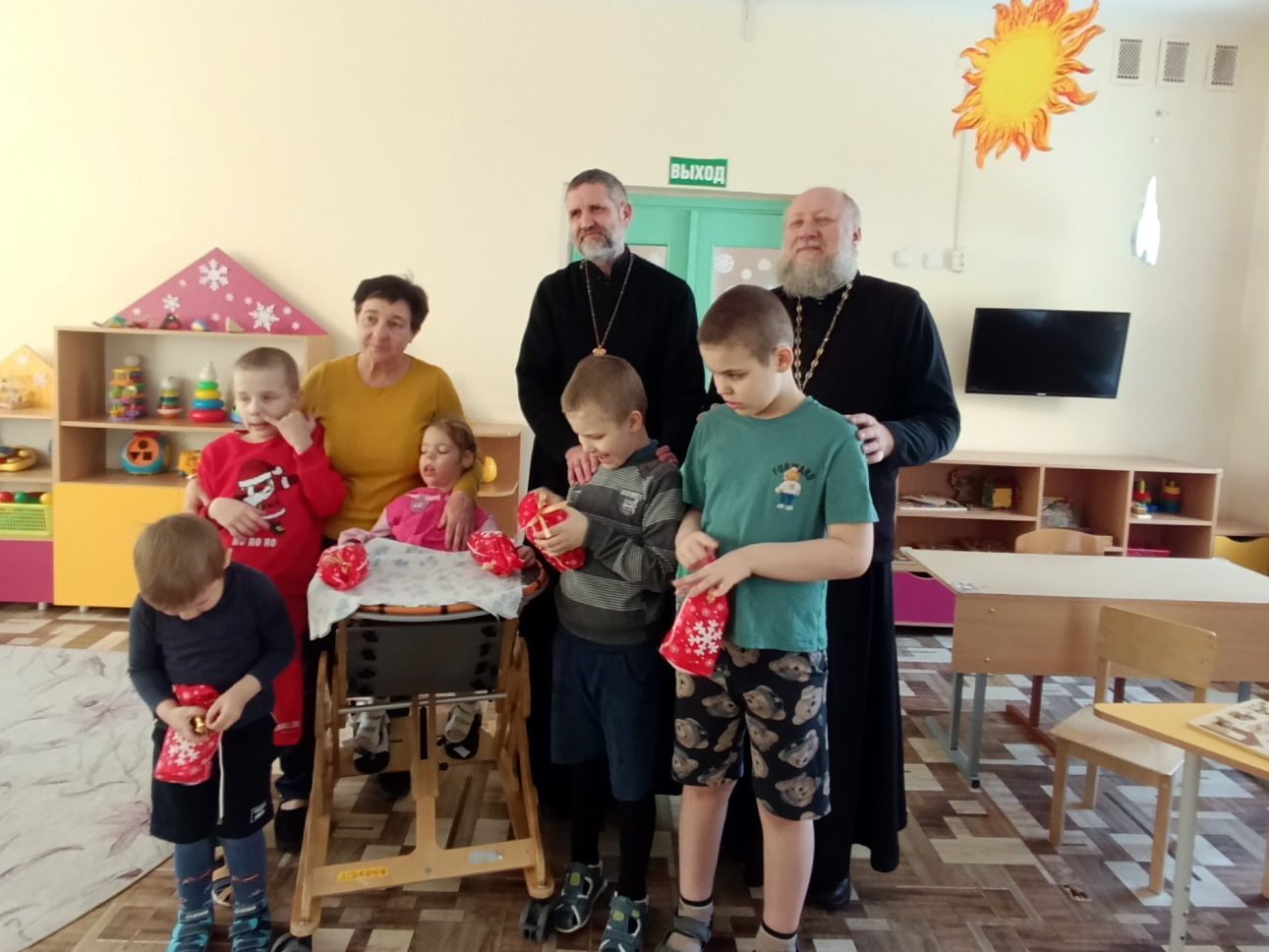 Гостей с радостью встретила директор учреждения Коледа Анастасия Анатольевна, провела батюшек по группам, где священники пообщались с детьми. Ребятам были переданы сладкие подарки, игрушки, книги. Для деток, которые находятся на домашнем обучении были тоже переданы подарки.