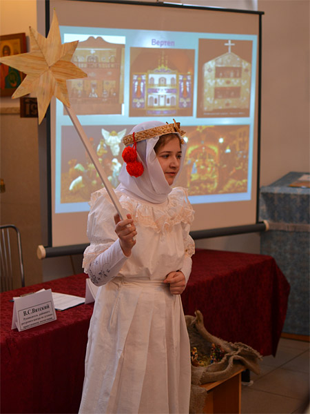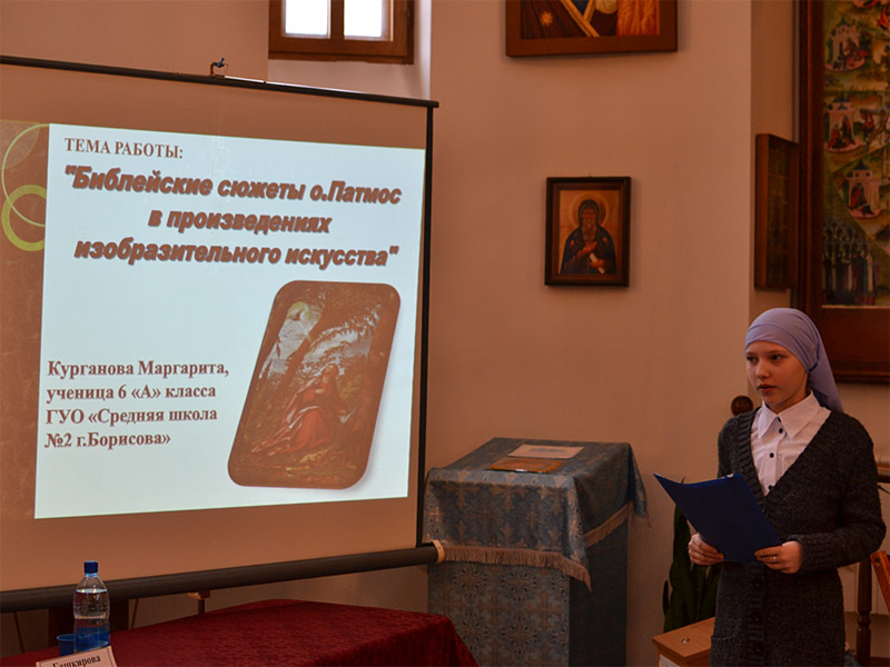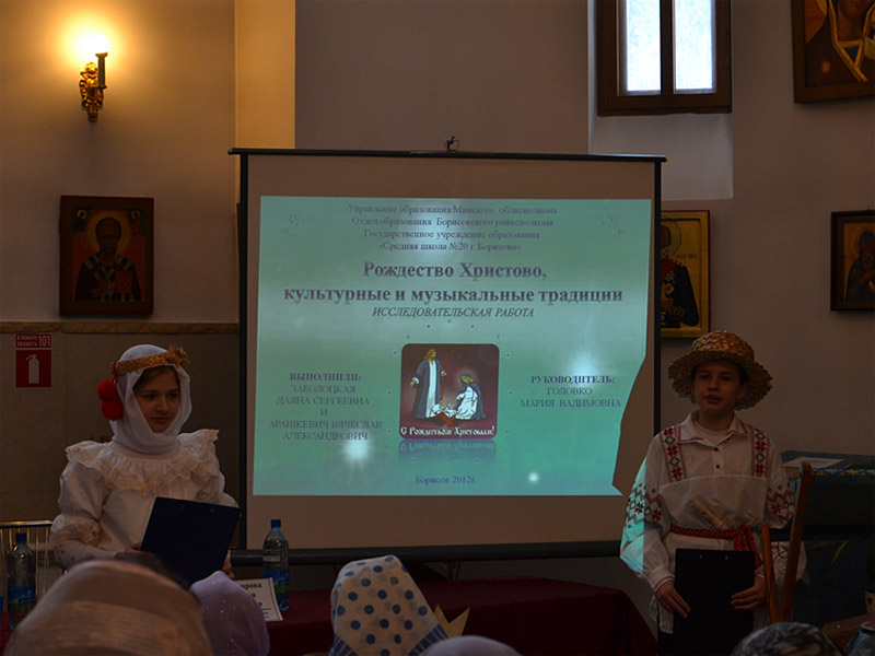 С сообщением «Земная жизнь Девы Марии в западноевропейском искусстве» выступила ученица 6 класса белорусскоязычной гимназии № 2 Яна Стельмах; о библейских сюжетах о. Патмос в произведениях изобразительного искусства говорила учащаяся 6 класса средней школы № 2 Маргарита Курганова. Темы, связанные с животным и растительным миром («Православная символика животных в Священном Писании и Предании», «Растения, о которых говорится в Библии») звучали в выступлениях учениц 3 класса УПК детский сад — школа № 24 Ионны Заболоцкой, Иулии Касперской, Анны Бризгуновой. Учащиеся 5 класса средней школы № 20 Дайана Заболоцкая и Вячеслав Арашкевич, наряженные в народные костюмы, не только рассказали о культурных и музыкальных традициях, но и исполнили рождественские песни и небольшую сценку.