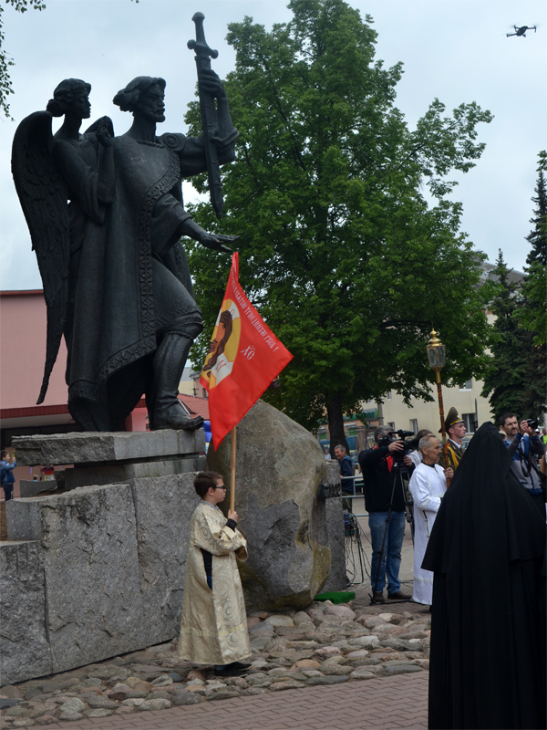 Ровно в 11:00 святыню доставили из Полоцкого Спасо-Евфросиниевского женского монастыря. Встретить Крест пришло духовенство Борисовской епархии, горожане. После встречи епископ Борисовский и Марьиногорский Вениамин обратился к собравшимся: «Мы собрались здесь в центре града Борисова для того, чтобы почтить память его основателя, а также Год малой родины. И мы сейчас вспоминаем, как зарождался город Борисов, как здесь князь Борис, выйдя защитить рубежи своего княжества и одолев ятвягов, создал сей град». Затем с приветственным словом выступил председатель районного Совета депутатов Навицкий Петр Викторович. Далее был совершён благодарственный молебен, после чего крестный ход двинулся по улицам города Борисова и направился в старую часть к памятнику князю Борису, где была совершена лития и возложены цветы. Крест преподобной Евфросинии Полоцкой с 19 по 21 мая находится в кафедральном соборе Воскресения Христова г. Борисова (ул. Лопатина 34), храм открыт с 7:00 до 21:00. Отбытие святыни 21 мая в 11:00.