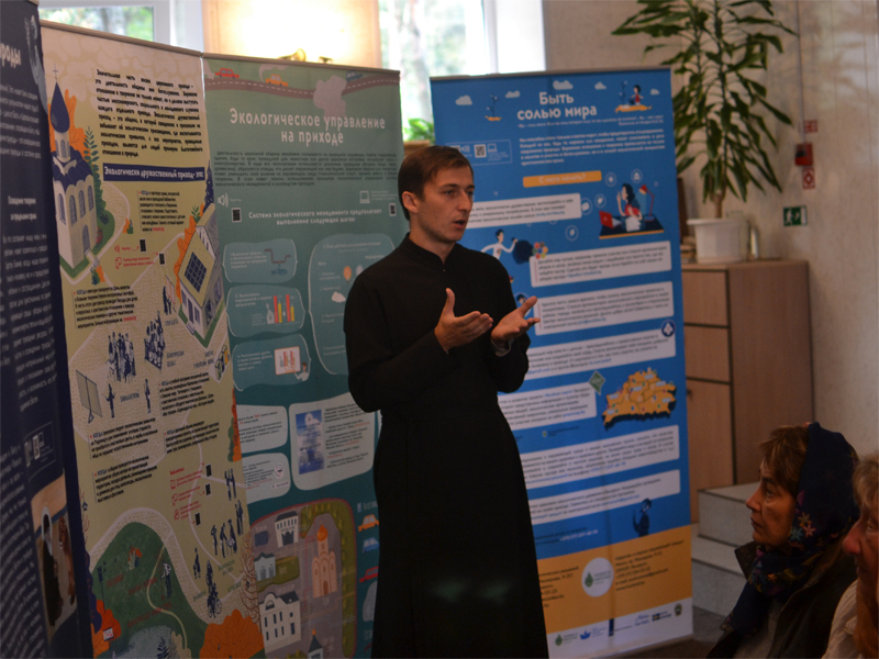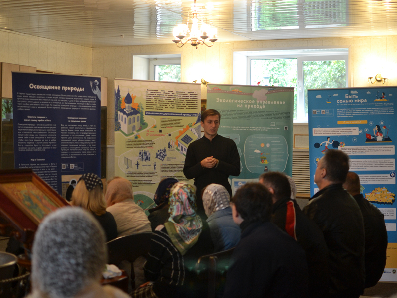 Первым приходом, где была организована выставка «Человек и творение», стал храм Рождества Христова г. Борисова. После богослужения в нижнем приделе собрались прихожане храма. Об экологических проблемах современности рассказала заведующая библиотекой ГУО «Учебно-педагогический комплекс ясли сад-средняя школа № 24 г. Борисова» Яунишкене Светлана Алексеевна, а о богословском осмыслении вопроса «Человек и творениe» — студент Минской духовной семинарии Артур Щербицкий.