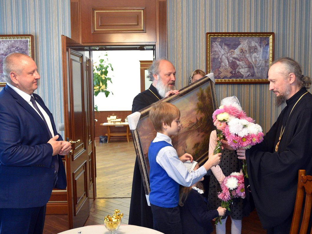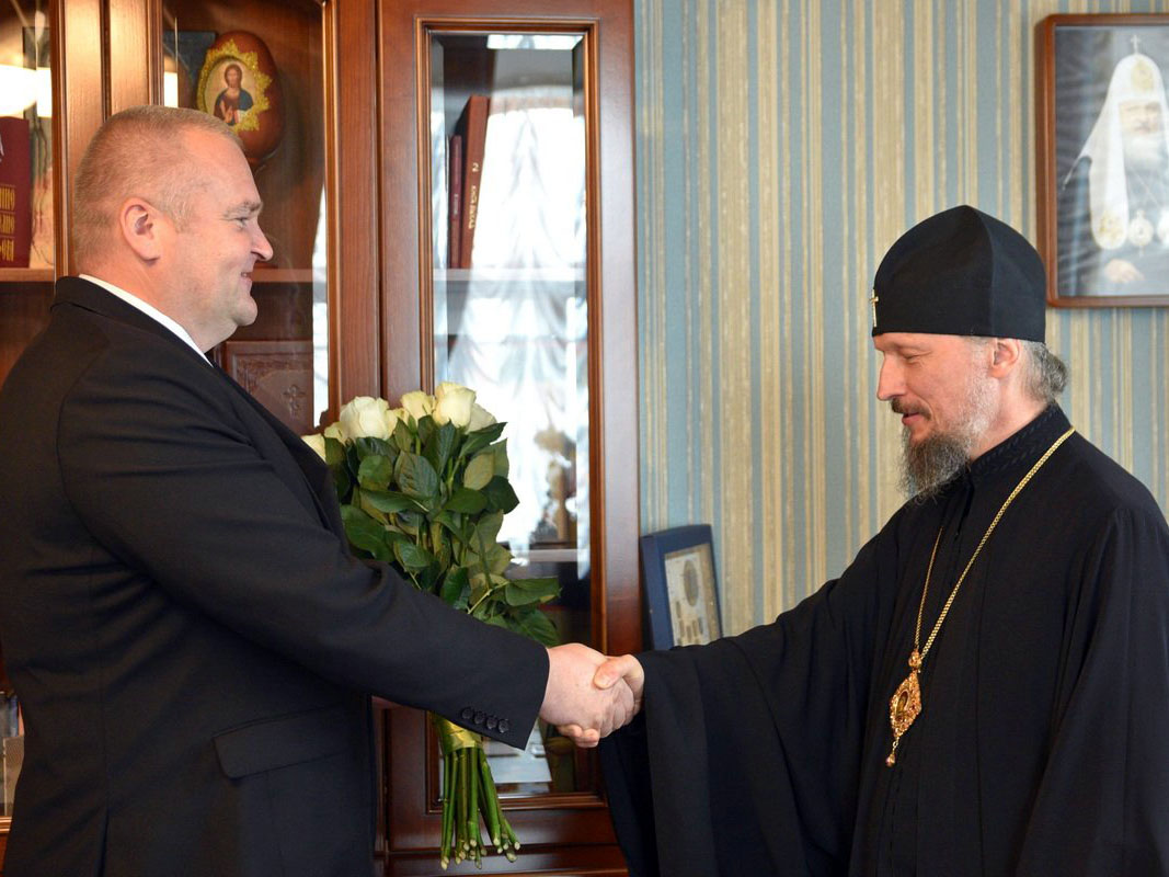 Поздравить Патриаршего Экзарха приехали председатель Борисовского районного исполнительного комитета Карпович Николай Николаевич и председатель Жодинского городского исполнительного комитета Заблоцкий Дмитрий Васильевич.