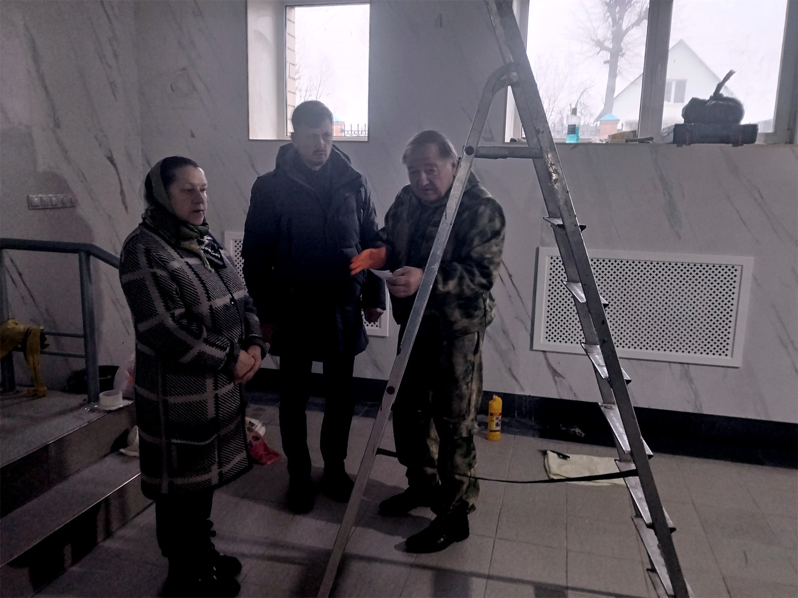 К настоящему времени ремонтные работы в основном завершены, и 20 декабря в храме состоялся субботник. Посильную помощь в них оказали прихожане. Они-то и пришли на субботник вместе с послушниками, клириками, чтобы произвести уборку, помыть окна, стены, пол, навести полный порядок в храме.