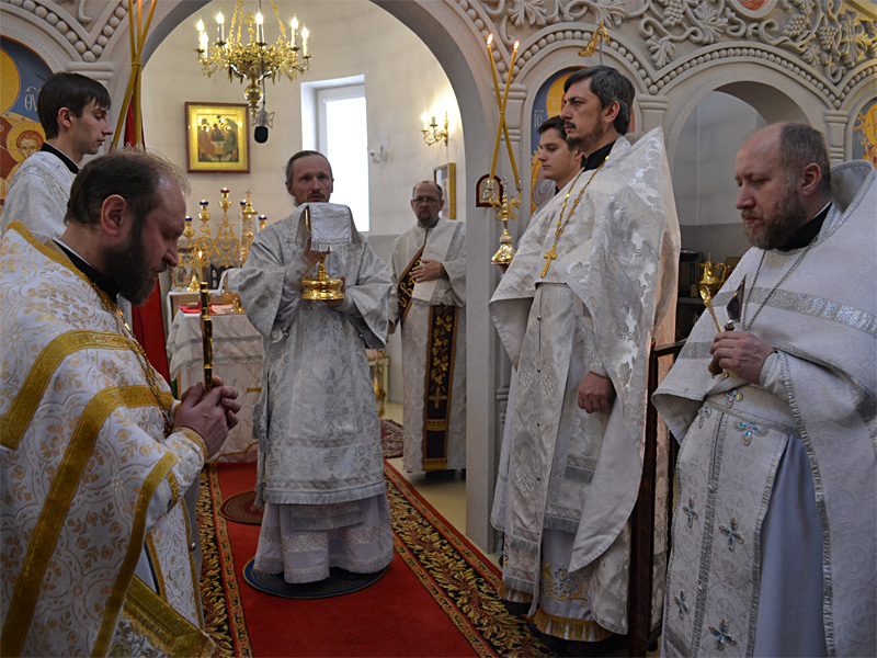 Его Преосвященству сослужили благочинный 1-го Борисовского церковного округа, настоятель прихода храма Рождества Христова протоиерей Александр Вербило, настоятель прихода храма Святой Живоначальной Троицы г. Борисова протоиерей Георгий Тюхлов, клирик прихода, иерей Александр Лукьянович, протодиакон Воскресенского кафедрального собора Георгий Росляков.