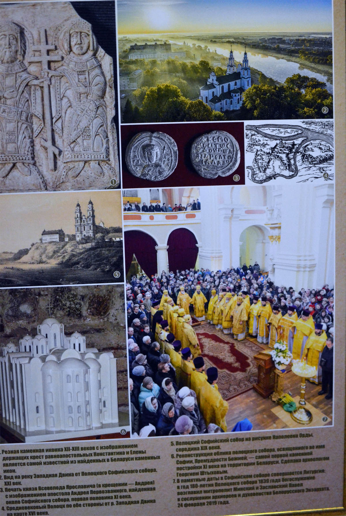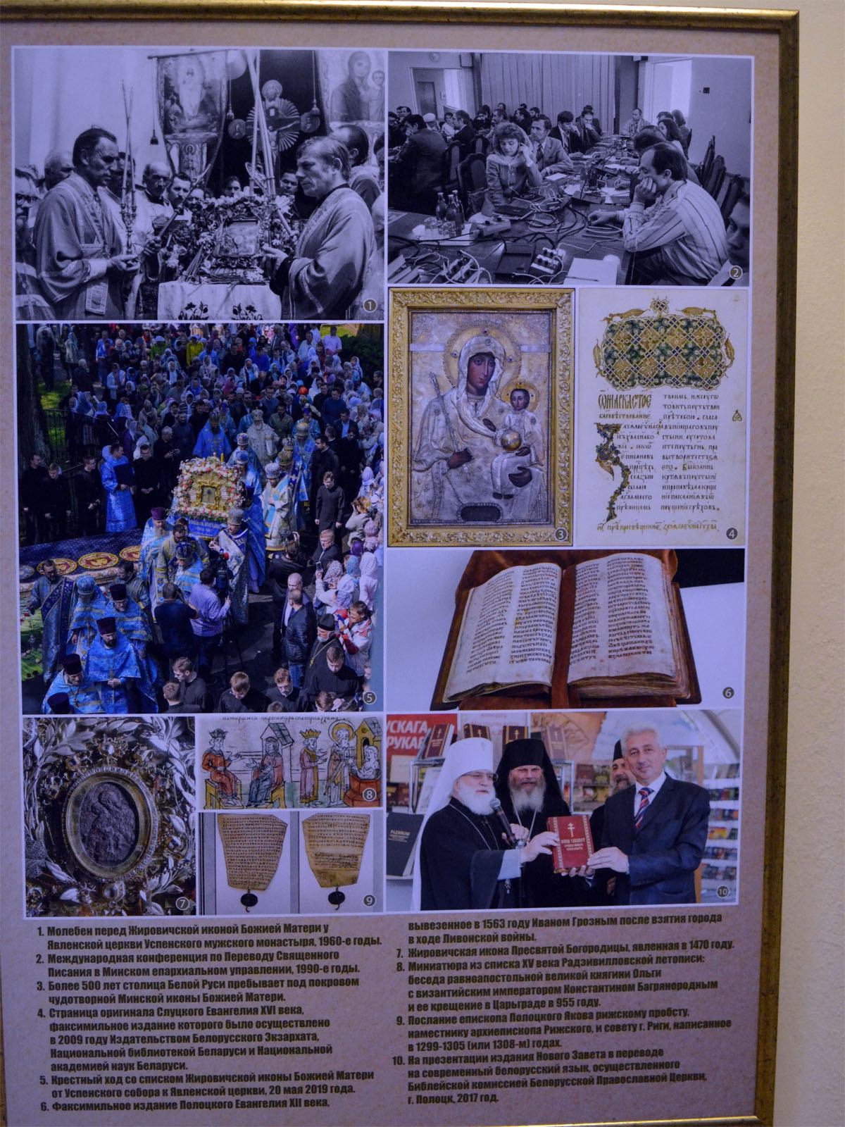 Экспозиция подготовлена Синодальным информационным отделом Белорусской Православной Церкви. Использованы архивы фотослужбы Патриарха Московского и всея Руси, Минского епархиального управления, Полоцкой епархии, Гродненской епархии, Минской духовной семинарии, Полоцкого Спасо-Евфросиниевского женского монастыря, братства в честь святого Архистратига Михаила г.Минска, прихода Петро-Павловского собора г. Минска, собрания Художественной галереи Национального Полоцкого историко-культурного музея-заповедника, а также снимки информационного портала «Планета Беларусь», открытых электронных и печатных ресурсов. Выставка действует до 5 февраля. Вход свободный.