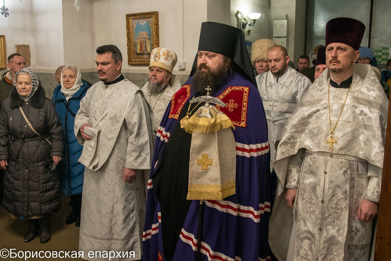 За богослужением архипастырю сослужили: старший духовник Борисовский епархии, благочинный Крупского церковного округа, настоятель храма святителя Николая Чудотворца г. Крупки протоиерей Николай Гмир; секретарь Борисовской епархии, благочинный 1-го Борисовского церковного округа, настоятель храма Рождества Христова г. Борисова протоиерей Александр Вербило; настоятель прихода Святой Живоначальной Троицы г. Борисова протоиерей Георгий Тюхлов.