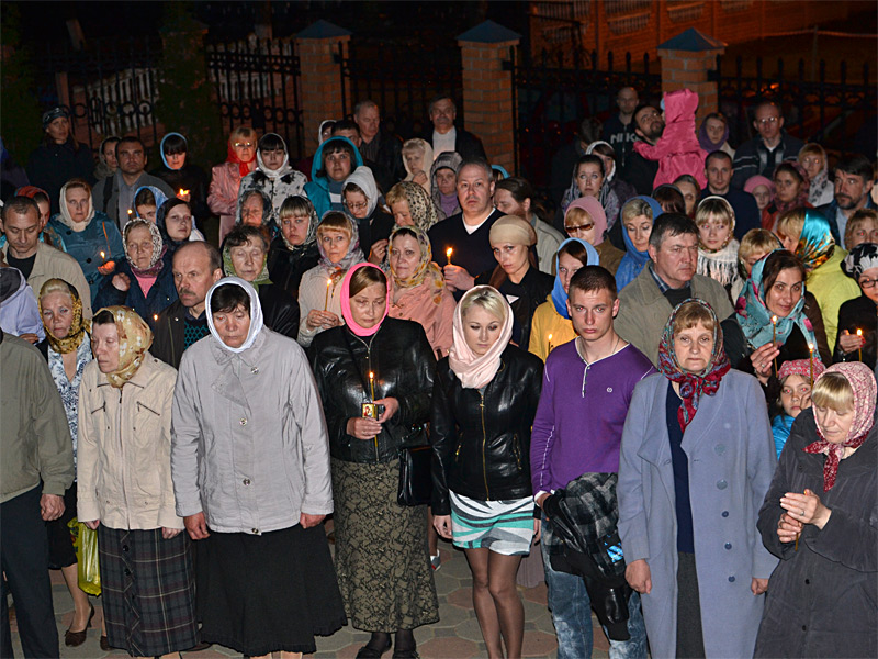 Огромное множество православных верующих посетило в ту ночь храм. Его помещение не могло вместить всех желающих. Многие молились во дворе храма. Во время перерыва и по окончании богослужений священники до самого утра, а затем почти до полудня освящали принесенные людьми пасхальные куличи и яйца. Освящение производилось также и накануне, в Великую субботу. У всех было радостное и праздничное настроение.