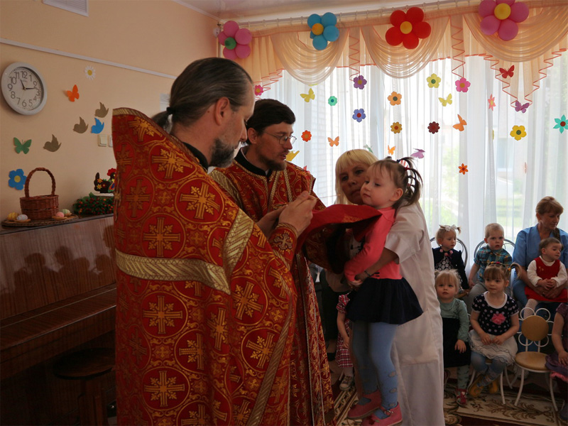 21 мая , в день, когда вспоминается евангельское событие исцеления Христом расслабленного и празднуется память апостола и евангелиста Иоанна Богослова, 48 воспитанников Борисовского специализированного дома ребенка причастились Святых Христовых Таин. Таинство Причащения совершили священнослужители кафедрального собора Воскресения Христова протоиерей Димитрий Дорошенко и протодиакон Михаил Сидоров. В этот день один из малышей принял Таинство Крещения.
