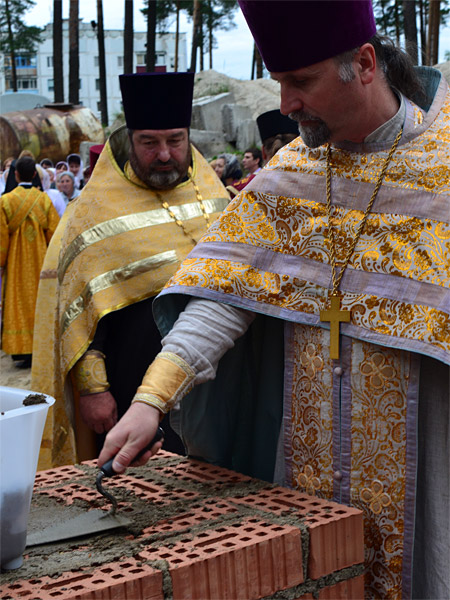 «Дело всегда спорится и жизнь людей по-другому складывается, когда всё освящено молитвой. Сегодня мы будем молиться, чтобы Божия благодать почила на месте будущего храма, чтобы стройка шла благополучно. Место же это выбрано вполне удачно. Даже внешняя обстановка располагает к тому, чтобы свой мысленный взор мы поднимали к Небу, задумывались о смысле нашей жизни».