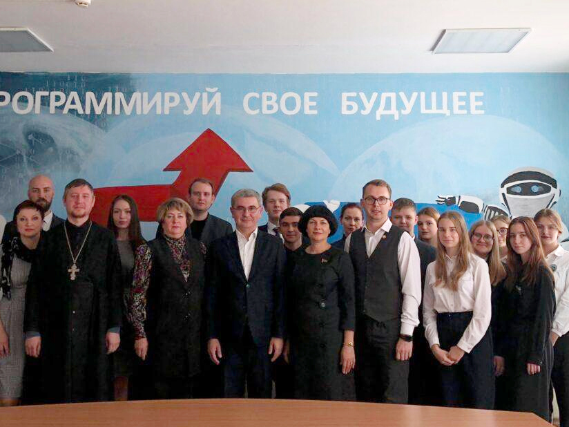 За круглым столом собрались председатель Борисовского районного Совета депутатов Лилия Чеча, член Совета Республики Национального собрания Республики Беларусь, председатель Борисовского районного объединения организаций профсоюзов Елена Зябликова, заместитель председателя Минского областного объединения профсоюзов Дмитрий Бочков, депутат Минского областного Совета депутатов, директор СШ №8 Наталья Дмитриева, начальник отдела воспитательной, идеологической работы и охраны детства управления по образованию Борисовского райисполкома Ирина Будникова, настоятель прихода храма Святой Живоначальной Троицы д. Бытча Борисовского р-на иерей Василий Рубцов, члены Молодежного парламента и Молодежного Совета, а также лидеры и активисты школьного самоуправления.