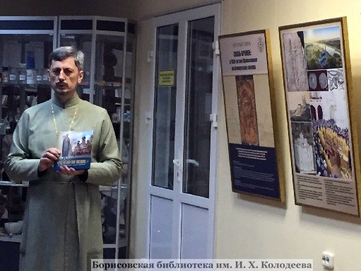 – Эта выставка недавно была представлена на Рождественских чтениях Минской митрополии, проходивших в борисовском Дворце культуры им. М. Горького, – продолжил протоиерей Александр Вербило. – Чем она будет вам интересна и полезна, спросите вы. Во-первых, древние фотографии всегда вызывают интерес. Многие цветные фотографии тоже уже давние, первые датируются примерно 1989 годом – с момента возрождения у нас духовной жизни. Есть современные кадры. Связь даты 1030-летия Православия на белорусских землях напрямую связано с нашим городом. Потому я в руках держу ещё один источник – книгу «Город славный, город древний», изданную в 2021 году в честь 920-летия княжения князя Бориса Всеславича. А в прошлом году отметили 920-летие нашего города. Крещение Руси связано с великим князем Киевской Руси Владимиром, и оно распространяется на нынешние белорусские земли.