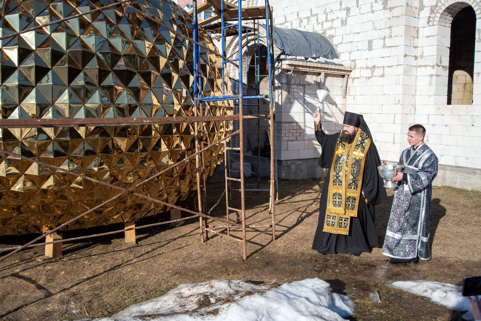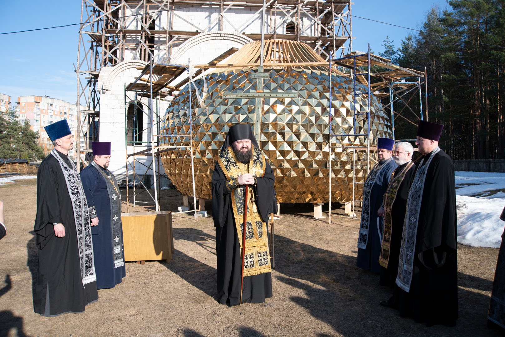 22 марта епископ Борисовский и Марьиногорский Амвросий совершил освящение креста и купола для строящегося храма в честь святых благоверных князей-страстотерпцев Бориса и Глеба г. Борисова.