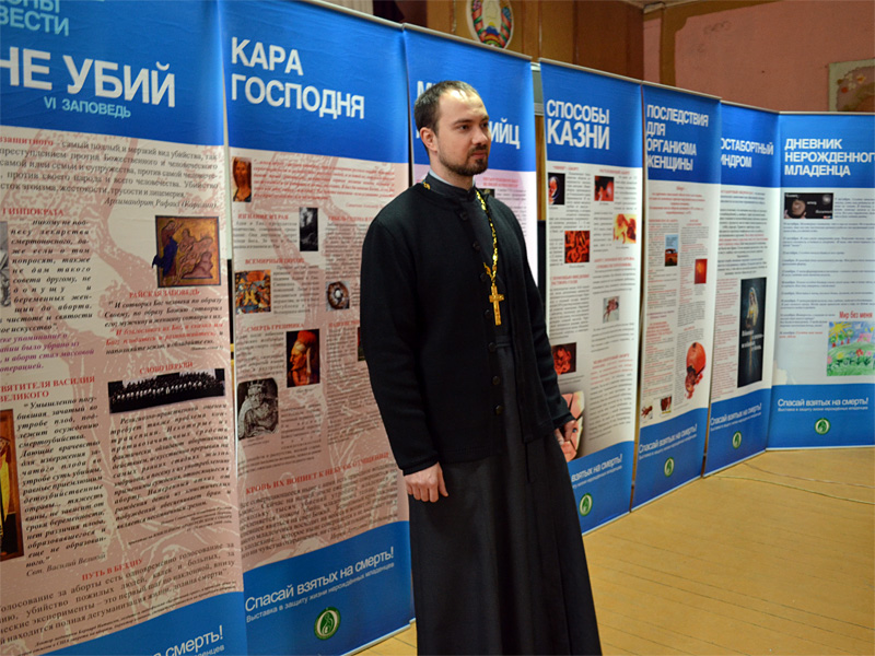 Выставка «Спасай взятых на смерть» была проведена в одной из воинских частей Борисовского гарнизона. На ней выступили клирик храма Рождества Христова г. Борисова иерей Григорий Барашко, врач акушер-гинеколог, заведующий отделением медицинского колледжа Светлана Фоминична Мозгунова, студенты этого колледжа. Организаторы выставки считают, что подобные мероприятия важны всем молодым людям, как девушкам, так и юношам.