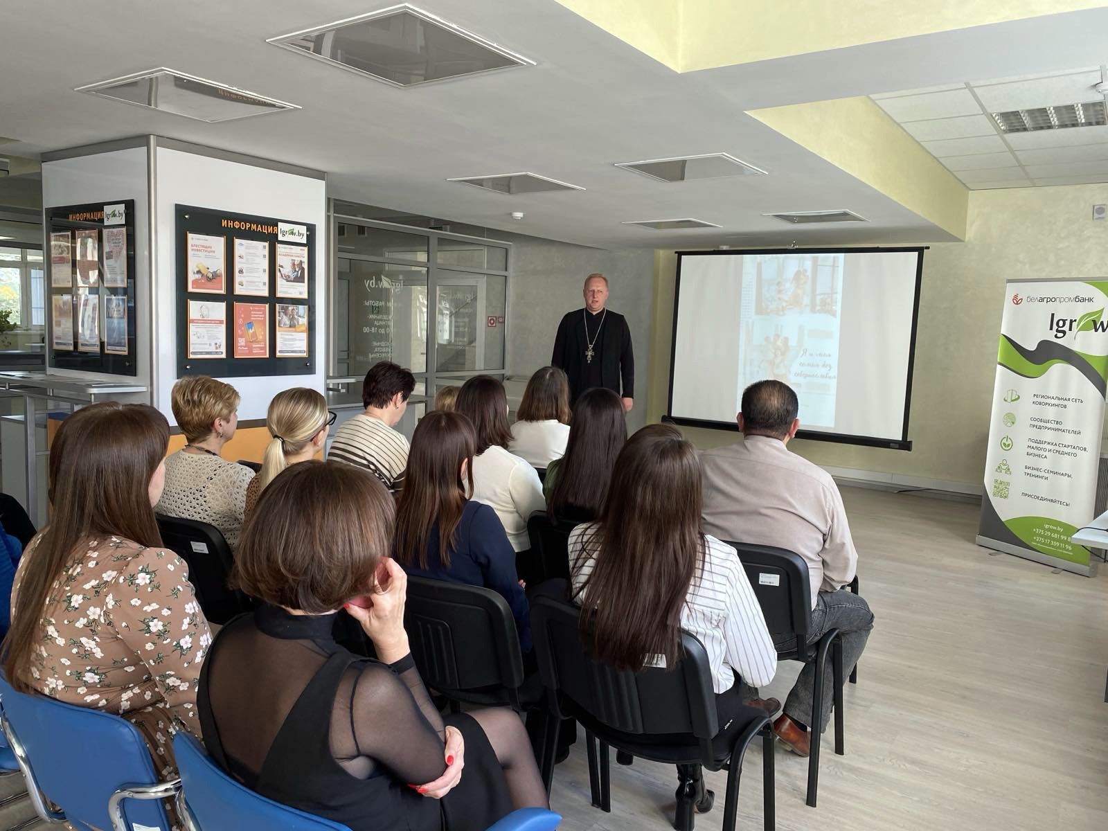 22 октября в Борисовском отделении ОАО «Белагропромбанк» состоялась встреча с секретарём Борисовской епархии, протоиереем Сергием Башкировым, приуроченная к республиканской акции «Я и моя семья - без сквернословия».