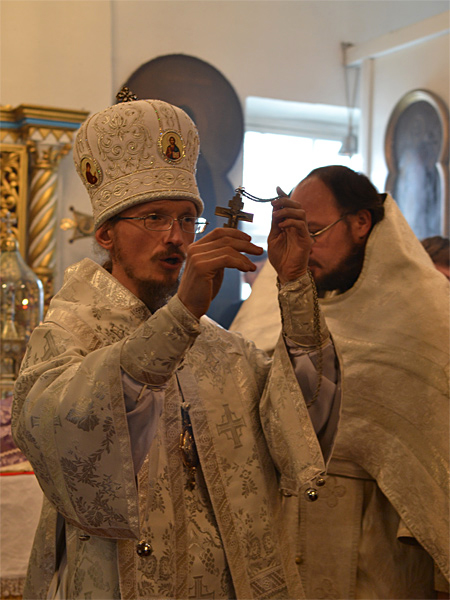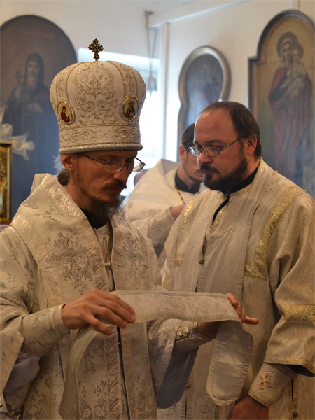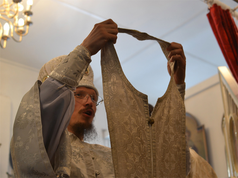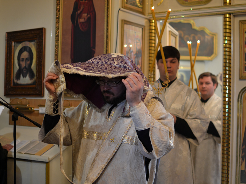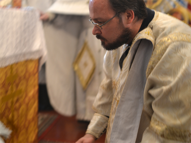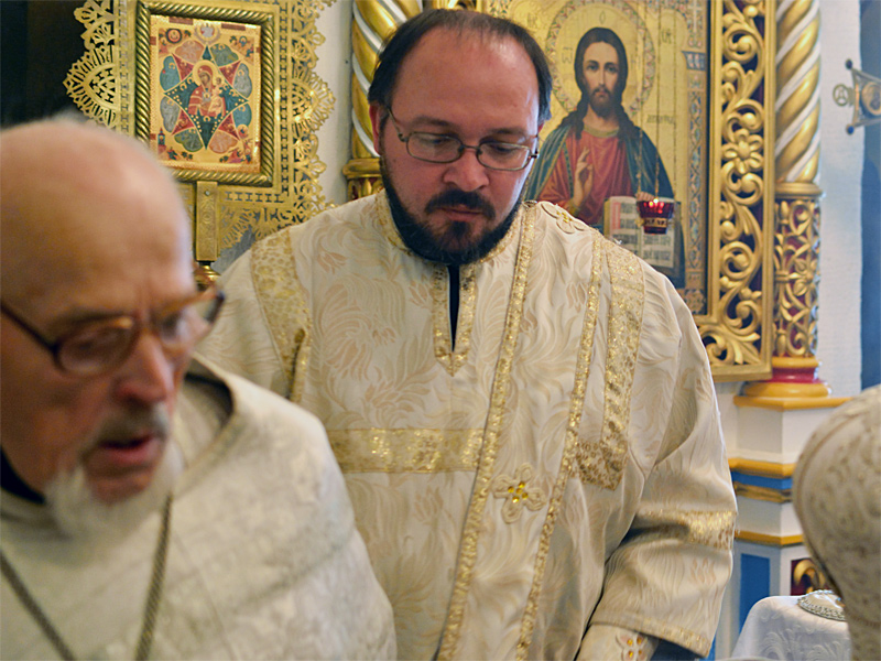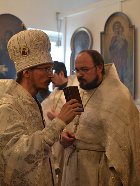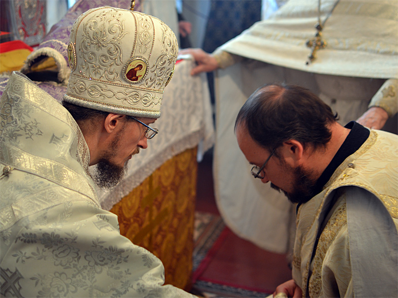 За Божественной Литургией владыка Вениамин рукоположил дьякона Свято-Воскресенского Собора Александра Базарнова во иерея и напутствовал его следующими словами:
