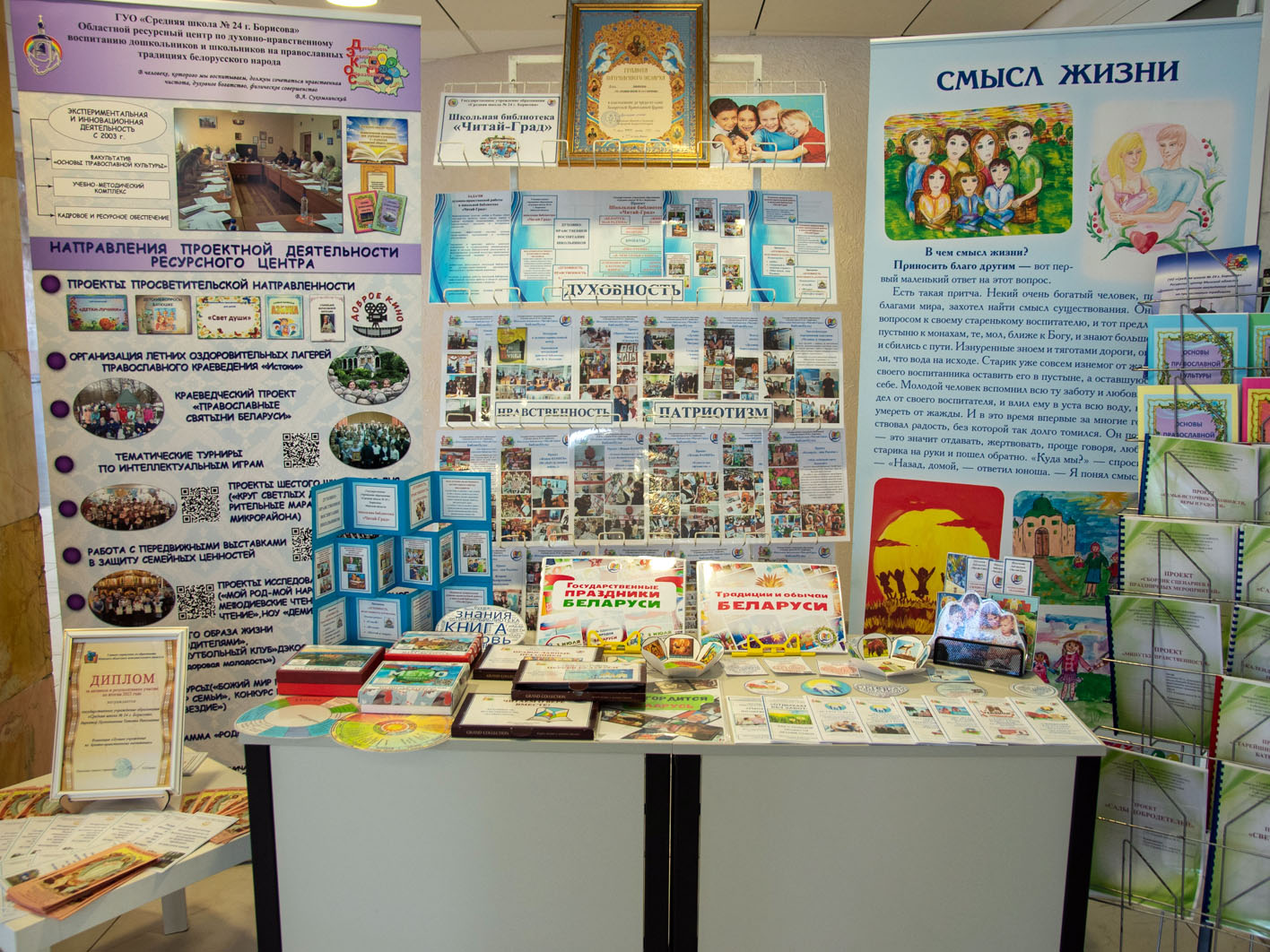 Предварила чтения выставка работ учащихся областного ресурсного центра по духовно-нравственному воспитанию ГУО «Средняя школа №24 г. Борисова» и ГУО «Средняя школа №7 г. Борисова», музыкальное выступление юных цимбалистов.