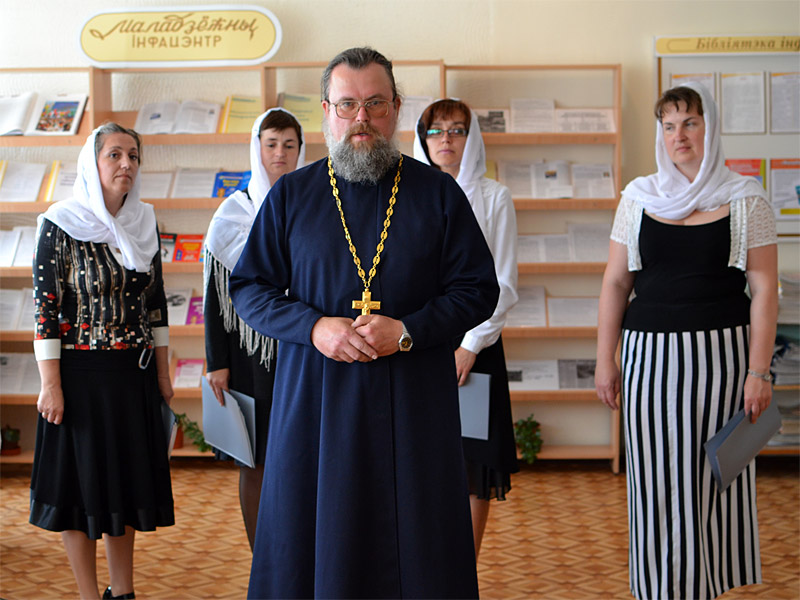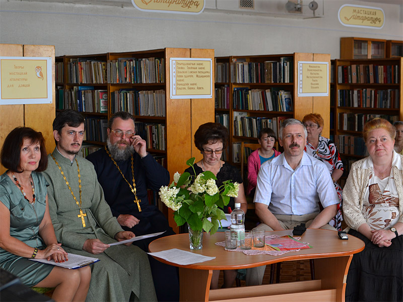 Приветствуя участников мероприятия, о. Александр указал на то, что оно проходит в рамках духовно-просветительской ярмарки-выставки «Беларусь Православная», которая помогает нам прикоснуться к истории Беларуси, ее культуре, духовности. И очень замечательно, что мы сейчас находимся в библиотеке.