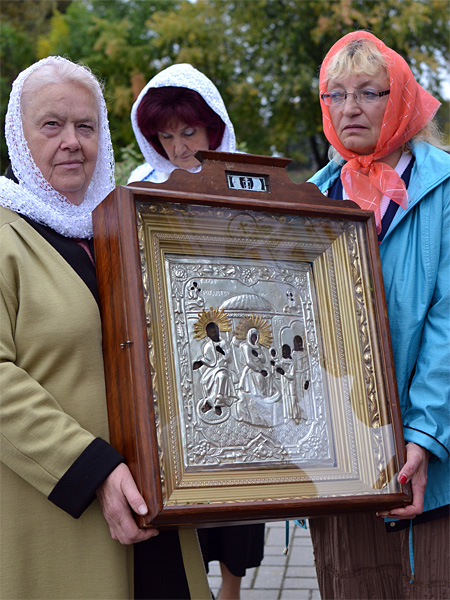 Вокруг храма Рождества Пресвятой Богородицы был совершен Крестный ход.