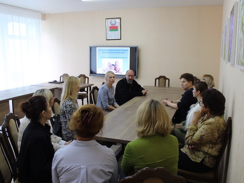 Как строить работу с семьёй, где ситуация далека от идеальной? Можно ли преодолеть негативное воздействие семьи на формирующуюся личность ребёнка? — эти вопросы стали лейтмотивом встречи-беседы педагогов со священником православной церкви отцом Георгием Тюхловым, настоятелем прихода Святой Живоначальной Троицы г. Борисова.
