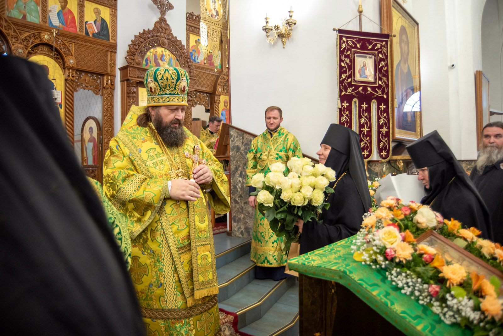 По завершении богослужения было совершено славление преподобному Амвросию Оптинскому, после чего архиепископ Стефан поздравил епископа Амвросия с Днём тезоименитства.