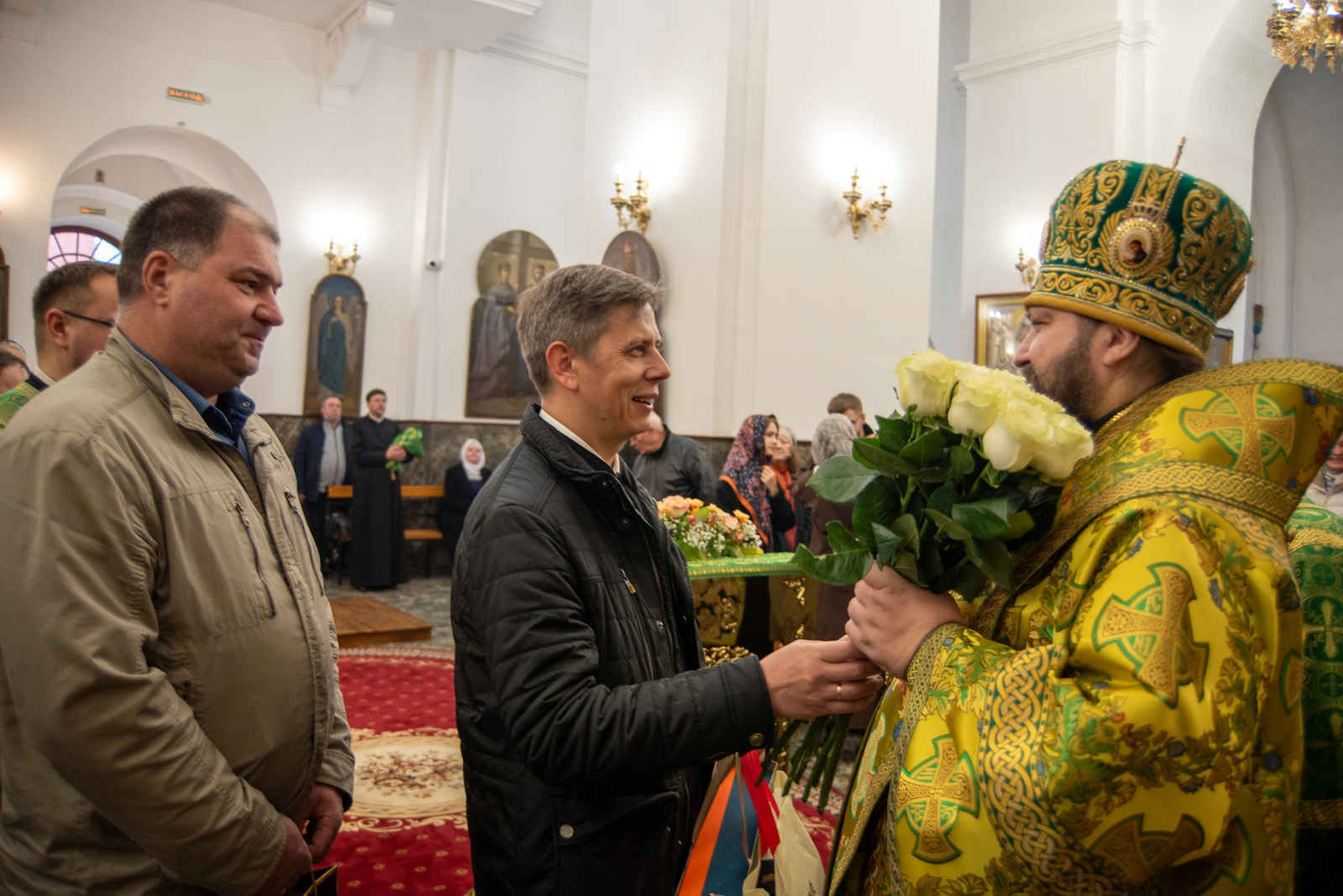 От лица духовенства епархии с Днём тезоименитства владыку поздравил благочинный Березинского церковного округа протоиерей Илья Гончарук, а от прихожан кафедрального собора – ключарь собора протоиерей Павел Яцукович.